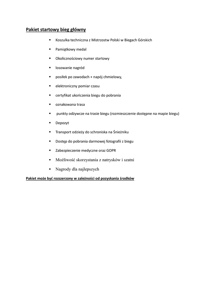 Pakiet startowy bieg główny