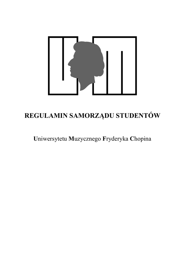 REGULAMIN SAMORZĄDU STUDENTÓW Uniwersytetu Muzycznego Fryderyka Chopina 1 Spistreści ROZDZIAŁ I. POSTANOWIENIA OGÓLNE. ……………………………………………………… 3 ROZDZIAŁ II. ORGANY SAMORZĄDU STUDENTÓW UMFC. ………………………………………. 4 Organy Samorządu. ………………………………………………………………….…… 4 Walne Zgromadzenie. ……………………………………………………………………… 4 Zarząd. …………………………………………………………..…………………………. 5 Przewodniczący Samorządu. …………………………………………………...........…… 8 Przedstawiciele wydziałów. ………………………………………………………………... 8 Sąd Koleżeński. ……………………………………………………………………….......... 9 Komisja Rewizyjna……………………………………………………………………………9 Komisje studenckie. ………………………………………………………………………….9 ROZDZIAŁ III. ZASADY I TRYB WYBORÓW INSPEKTORA CHÓRU i INSPEKTORA ORKIESTRY. ………… 10 ROZDZIAŁ IV. ORDYNACJA WYBORCZA SAMORZĄDU STUDENTÓW UMFC. ………………………… 10 ROZDZIAŁ V. PRZEPISY KOŃCOWE ……………………………………………………………… 11 2 Rozdział I Postanowienia ogólne §1 Wszyscy studenci studiów pierwszego i drugiego stopnia oraz jednolitych studiów magisterskich prowadzonych przez Uniwersytet Muzyczny Fryderyka Chopina, zwany dalej Uczelnią, tworzą Samorząd Studentów Uniwersytetu Muzycznego Fryderyka Chopina, zwany dalej Samorządem. §2 Samorząd działa na terenie Uniwersytetu Muzycznego Fryderyka Chopina, zwanego dalej Uczelnią, na podstawie przepisów Ustawy z dnia 27 lipca 2005 roku Prawo o szkolnictwie wyższym (Dz. U. Nr 164 poz. 1365 z późn. zm.), zwanej dalej Ustawą, w szczególności art. 202, oraz niniejszego Regulaminu zgodnie ze statutem Uniwersytetu Muzycznego Fryderyka Chopina. §3 Samorząd działa poprzez swoje organy oraz swoich przedstawicieli. §4 Zadaniem Samorządu jest dbanie o dobro wszystkich studentów Uczelni, a w szczególności: 1. współdziałanie z Władzami Uczelni oraz nauczycielami akademickimi w celu zapewnienia jak najwyższego poziomu kształcenia studentów i stworzenia im jak najlepszych warunków do zdobywania wiedzy i umiejętności, w tym także koniecznej pomocy materialnej; 2. uczestniczenie w realizacji zadań Wydziałów i Uczelni; 3. obrona praw studenckich; 4. działanie na rzecz przestrzegania przez studentów zasad współżycia koleżeńskiego; 5. inicjowanie i wspieranie samopomocy studenckiej; 6. inicjowanie i organizowanie wydarzeń artystycznych; 7. popieranie inicjatyw studenckich w zakresie nauki, kultury, publicystyki, sportu; 8. przeprowadzanie wyborów na Inspektora Chóru i Inspektora Orkiestry; 9. inspirowanie współpracy pomiędzy samorządami i organizacjami studenckimi; 10. podejmowanie decyzji, na podstawie przepisów Ustawy, o rozdziale środków przeznaczonych przez organy Uczelni na cele studenckie, niezwiązane bezpośrednio z prowadzonym przez Uczelnię kształceniem; 11. opiniowanie decyzji władz Uczelni w sprawach finansowych, dydaktycznych i innych, przewidzianych w odpowiednich aktach prawnych. §5 1. Środki niezbędne do funkcjonowania Samorządu zapewniają odpowiednie organy Uczelni, na podstawie przepisów Ustawy. 2. Środki pieniężne na działalność Samorząd uzyskuje: 1) w ramach środków przyznawanych przez Rektora na podstawie Ustawy; 2) z darowizn przeznaczonych na rzecz Samorządu; 3) w ramach własnej działalności. §6 Samorząd do realizacji swych celów korzysta z pomieszczeń i środków technicznych Uczelni w zakresie uzgodnionym z władzami Uczelni. 3 Rozdział II Organy Samorządu Studentów UMFC Organy Samorządu §7 Organy Samorządu są jedynym reprezentantem wszystkich studentów Uczelni. §8 1. 2. 3. 4. 5. 1. 2. 3. Organami Samorządu są: Walne Zgromadzenie Studentów Uczelni, zwane dalej Walnym Zgromadzeniem; Zarząd Samorządu Studentów Uczelni, zwany dalej Zarządem; Komisja Rewizyjna; Sąd Koleżeński; Komisje studenckie. §9 Kadencja organów wybieralnych trwa 2 lata, równolegle z kadencją przewodniczącego Samorządu. Członkowie organów wybieralnych po upływie kadencji pełnią swoje obowiązki do czasu nowych wyborów. Kadencja członka organu samorządu kończy się z chwilą utraty przez niego praw studenckich. Walne Zgromadzenie §10 Walne Zgromadzenie jest organem uchwałodawczym Samorządu, w jego skład wchodzą wszyscy studenci Uczelni. §11 1. Zwyczajne Walne Zgromadzenie odbywa się co dwa lata m.in. w celu wybrania członków: Zarządu, Komisji Rewizyjnej i Sądu Koleżeńskiego. 2. Nadzwyczajne Walne Zgromadzenie zwoływane jest przez Zarząd z własnej inicjatywy, na wniosek Prorektora ds. studenckich w porozumieniu z Zarządem, na wniosek Komisji Rewizyjnej lub na wniosek co najmniej 30% wszystkich studentów Uczelni. 3. Termin, miejsce oraz proponowany porządek obrad Zwyczajnego Walnego Zgromadzenia ogłaszany jest przez Zarząd nie później niż na trzy tygodnie przed datą Walnego Zgromadzenia. 4. Informacja dotycząca Nadzwyczajnego Walnego Zgromadzenia podawana jest do wiadomości co najmniej na 7 dni przed terminem. §12 Nadzwyczajne Walne Zgromadzenie może: 1. Odwołać członków Zarządu, Sądu Koleżeńskiego i Komisji Rewizyjnej większością kwalifikowaną 2/3 ogólnej liczby oddanych głosów lub przyjąć ich rezygnacje; 2. Wybrać członków organów Samorządu bezwzględną większością głosów; 3. Uchwalić i dokonać zmian w Regulaminie Samorządu bezwzględną większością głosów; 4 4. Powołać komisję studencką do celów doraźnych bezwzględną większością głosów. §13 Nadzwyczajne Walne Zgromadzenie może zażądać