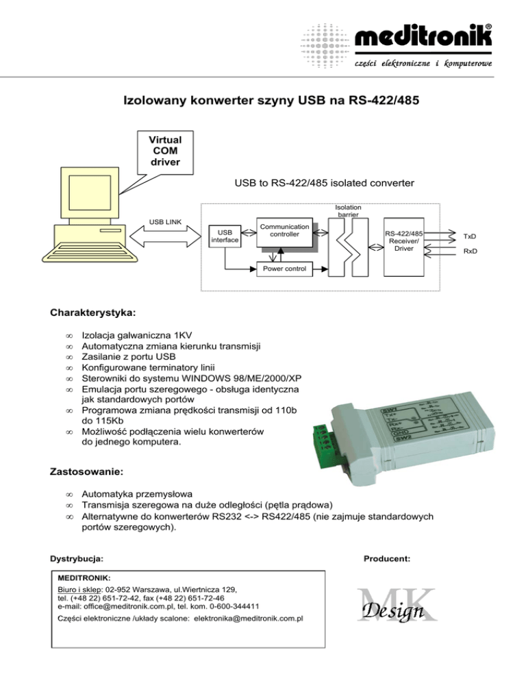 Izolowany konwerter szyny USB na RS