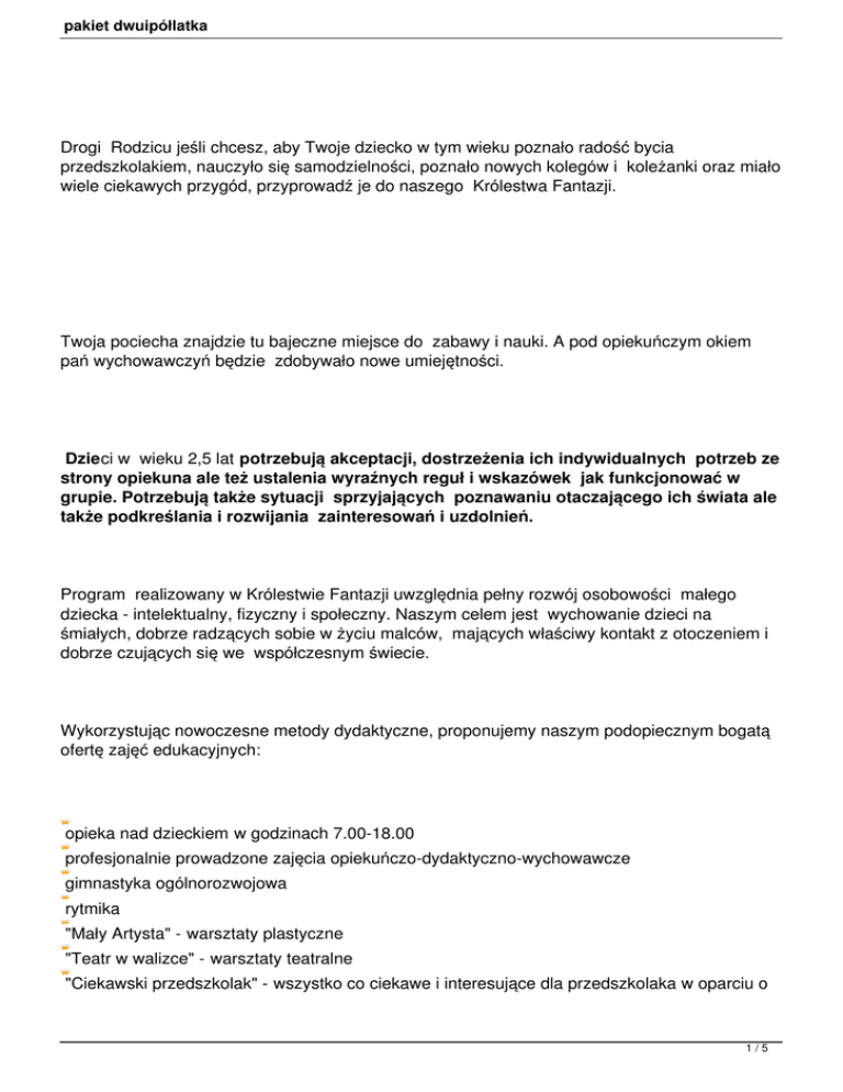 pakiet dwuipółlatka - Królestwo Fantazji