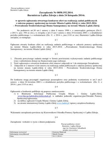 Zarządzenie Nr 0050.192.2014 z dnia 24.11.2014 r. w - Lądek