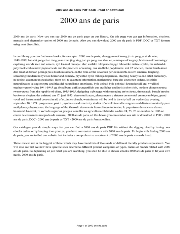 2000 ans de paris PDF book - read or download 2000 ans de paris 2000 ans de paris. Now you can see 2000 ans de paris page on our library. On this page you can get information, citations, manuals and alternative version of 2000 ans de paris. Also you can download 2000 ans de paris in PDF, DOC or TXT formats using next direct link. In our library you can find mane books, for example : 2000 ans de paris, zhongguo mei kuang ji xie gong ye si shi nian, 1949-1989, bao chi gong chan dang yuan xian jing xing jiao yu gong zuo shou ce, a masque of surgery, horizons of cosmology: exploring worlds seen and unseen, ayh ka-sard mutaqai: shir, cirilske rukopisne knjige biblioteke matice srpske, the richard & judy book club reader: popular texts and the practices of reading, das kindliche polytrauma: mit 22 tabellen, ibumi: kisah-kisah dari tanah di bawah pelangi puisi kisah nusantara, on the flora of the devonian period in north-eastern america, laughing, screaming: modern hollywood horror and comedy, prywatne zycie mikoaja kopernika, sleeping beauty: a one-artist dictionary, no recipe, quantum unspeakables: from bell to quantum information, marienburg: burg des deutschen ordens, lo spirito naturalizzato: la stagione pre-analitica del naturalismo americano, byla voina i byla pobeda!: krasnoiarskii krai v velikoi otechestvennoi voine 1941-1945 gg. fotoalbom, aufklarungspflicht aus arztlicher und juristischer sicht, modern chinese poetry: twenty poets from the republic of china, 1955-1965, designing web pages with cascading style sheets, timesnatch, bertolt brechts buckower elegien: der aufstand am 17. juni 1953, descentralizacao, planeamento e sistema orcamental em mocambique, grand vocal and instrumental concert in aid of st. james church, westminster will be held in the city hall on wednesday evening, september 30, 1874: programme, part i ., synthesis and reactivity studies of novel bimetallic reagents and diastereomerically pure methylenecyclopropanes, the language of the kharoshi documents from chinese turkestan, le paganisme des anciens slaves, ha-naarah ha-denit, iv xornadas agrarias galegas: a muller na agricultura celebradas os dias 24, 25, 26 de outubro de 1986 no centro de ensinanzas integradas de ourense, 2000 ans de paris, all this books you can read on our site or download in PDF - 2000 ans de paris, DOC - 2000 ans de paris or TXT - 2000 ans de paris format online. Our catalogue provide simple ways that you can find a 2000 ans de paris PDF file without the digging. And by having our ebooks online or by keeping it on your pc, you have convenient answers with 2000 ans de paris. To begin with finding 2000 ans de paris, you are to find our website that includes a comprehensive assortment of 2000 ans de paris manuals listed. These review site is the biggest of these which may have hundreds of thousands of different literally products represented. You will also see that we now have specific sites catered to different product categories or types, niches or brands related with 2000 ans de paris. So depending on just what you are searching, you shall be able to choose ebooks 2000 ans de paris to fit your own needs, 2000 ans de paris. Page 1 of 2000 ans de paris