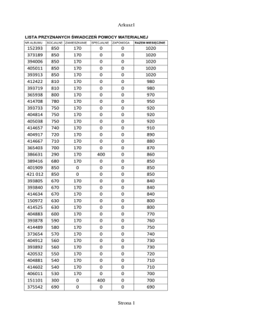 Arkusz1 LISTA PRZYZNANYCH ŚWIADCZEŃ POMOCY MATERIALNEJ NR ALBUMU 152393 373189 394006 405011 393913 412422 393719 365938 414708 393733 404814 405038 414657 404917 414667 365403 386631 389416 401909 421 012 393805 393840 414634 150972 414525 404883 393878 414489 373654 404912 393892 420532 404881 414602 406011 151101 375542 SOCJALNE ZAMIESZKANIE 850 850 850 850 850 810 810 800 780 750 750 750 740 720 710 700 290 680 850 850 670 670 670 630 630 600 590 580 570 560 560 550 540 540 530 300 690 170 170 170 170 170 170 170 170 170 170 170 170 170 170 170 170 170 170 0 0 170 170 170 170 170 170 170 170 170 170 170 170 170 170 170 0 0 SPECJALNE 0 0 0 0 0 0 0 0 0 0 0 0 0 0 0 0 400 0 0 0 0 0 0 0 0 0 0 0 0 0 0 0 0 0 0 400 0 ZAPOMOGA RAZEM MIESIĘCZNIE 0 0 0 0 0 0 0 0 0 0 0 0 0 0 0 0 0 0 0 0 0 0 0 0 0 0 0 0 0 0 0 0 0 0 0 0 0 Strona 1 1020 1020 1020 1020 1020 980 980 970 950 920 920 920 910 890 880 870 860 850 850 850 840 840 840 800 800 770 760 750 740 730 730 720 710 710 700 700 690 Arkusz1 404998 389526 414700 393736 373616 414494 389552 420526 421899 373866 373772 414640 373729 373241 412413 393725 393861 373746 414711 414590 393912 403896 381384 393712 421902 389107 414663 421889 389438 389518 373603 151305 393 812 393705 404972 404990 414675 412435 411174 373244 520 520 520 510 500 500 500 490 470 470 470 440 430 420 410 410 540 370 370 360 360 530 530 350 520 350 350 340 340 340 330 320 320 310 310 310 310 310 300 470 170 170 170 170 170 170 170 170 170 170 170 170 170 170 170 170 0 170 170 170 170 0 0 170 0 170 170 170 170 170 170 170 170 170 170 170 170 170 170 0 0 0 0 0 0 0 0 0 0 0 0 0 0 0 0 0 0 0 0 0 0 0 0 0 0 0 0 0 0 0 0 0 0 0 0 0 0 0 0 0 0 0 0 0 0 0 0 0 0 0 0 0 0 0 zł 0 0 0 0 0 0 0 0 0 0 0 0 0 0 0 0 0 0 0 0 0 0 0 0 0 0 Strona 2 690 690 690 680 670 670 670 660 640 640 640 610 600 590 580 580 540 540 540 530 530 530 530 520 520 520 520 510 510 510 500 490 490 480 480 480 480 480 470 470 Arkusz1 414649 414558 404878 404882 393891 389542 414491 414605 373708 386523 421900 414601 414683 373764 421046 389398 404859 414509 405791 373633 393776 386980 393781 414539 373656 404929 389041 394007 405018 414712 420985 151131 421019 382253 403898 389037 386634 373810 414687 365339 300 290 440 440 260 430 250 250 250 250 250 250 410 240 410 0 0 0 0 0 0 0 0 0 0 0 0 0 0 0 0 0 0 0 0 210 200 360 355 180 170 170 0 0 170 0 170 170 170 170 170 170 0 170 0 0 0 0 0 0 0 0 0 0 0 0 0 0 0 0 0 0 0 0 0 170 170 0 0 170 0 0 0 0 0 0 0 0 0 0 0 0 0 0 0 400 400 400 400 400 400 400 400 400 400 400 400 400 400 400 400 400 400 400 400 0 0 0 0 0 0 1000 0 0 0 0 0 zł 0 0 0 0 0 0 0 0 0 0 0 0 0 0 0 0 0 0 0 0 0 0 0 0 0 0 0 0 0 0 0 0 0 Strona 3 470 460 440 440 430 430 420 420 420 420 420 420 410 410 410 400 400 400 400 400 400 400 400 400 400 400 400 400 400 400 400 400 400 400 400 380 370 360 355 350 Arkusz1 414502 414536 412423 393804 404963 405000 405006 389121 414695 404863 390593 393867 405040 151122 414669 414474 330875 421051 403893 372904 393787 421047 402986 180 180 180 180 180 180 180 180 180 180 180 180 180 180 180 180 310 260 240 180 180 180 180 170 170 170 170 170 170 170 170 170 170 170 170 170 170 170 170 0 0 0 0 0 0 0 0 0 0 0 0 0 0 0 0 0 0 0 0 0 0 0 0 0 0 0 0 0 0 0 0 0 0 0 0 0 0 0 0 0 0 0 0 0 0 0 0 0 0 0 0 0 Strona 4 350 350 350 350 350 350 350 350 350 350 350 350 350 350 350 350 310 260 240 180 180 180 180