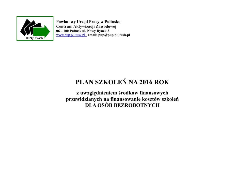 plan szkoleń na 2016 rok - Powiatowy Urząd Pracy w Pułtusku