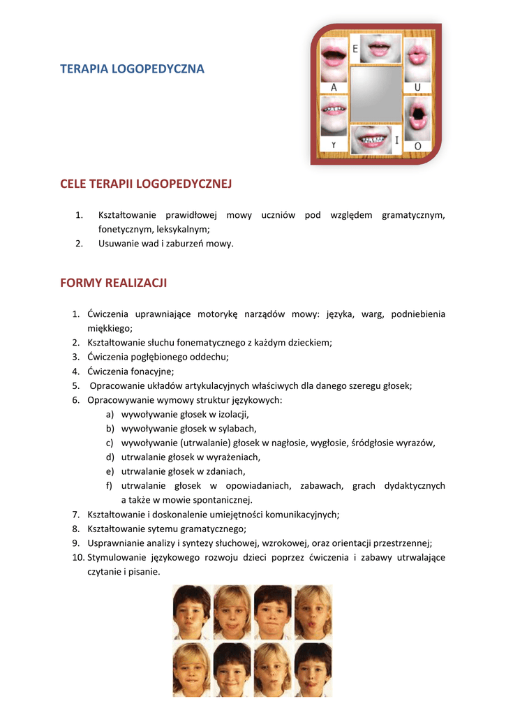 terapia logopedyczna cele terapii logopedycznej formy realizacji