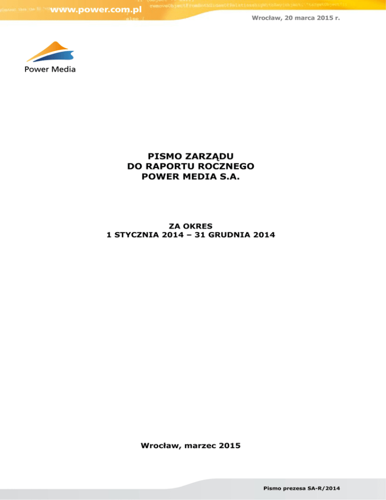 PISMO ZARZĄDU DO RAPORTU ROCZNEGO POWER MEDIA S.A.