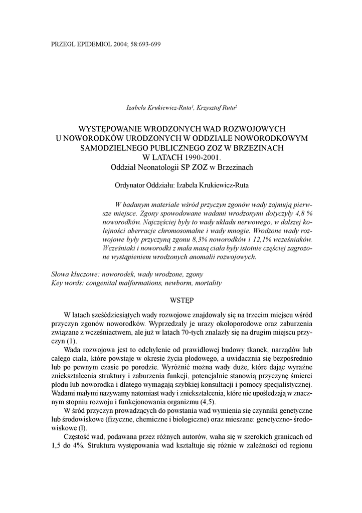 Nr 4 693 WYSTĘPOWANIE WRODZONYCH WAD ROZWOJOWYCH