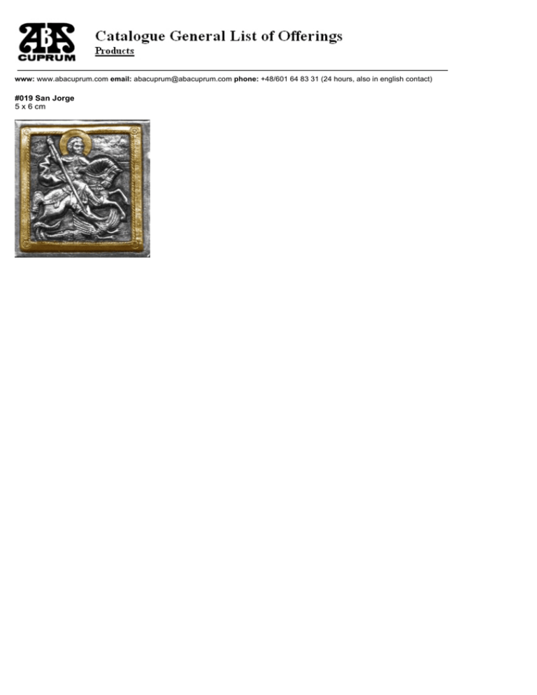 www: www.abacuprum.com email: [email protected] phone: +48/601 64 83 31 (24 hours, also in english contact) #019 San Jorge 5 x 6 cm