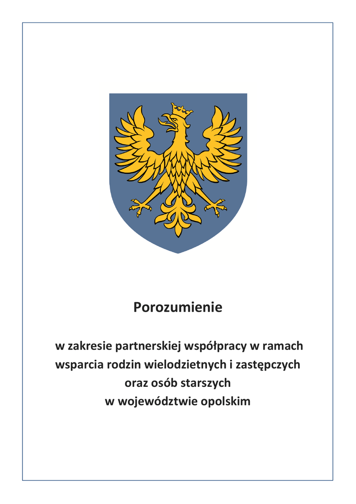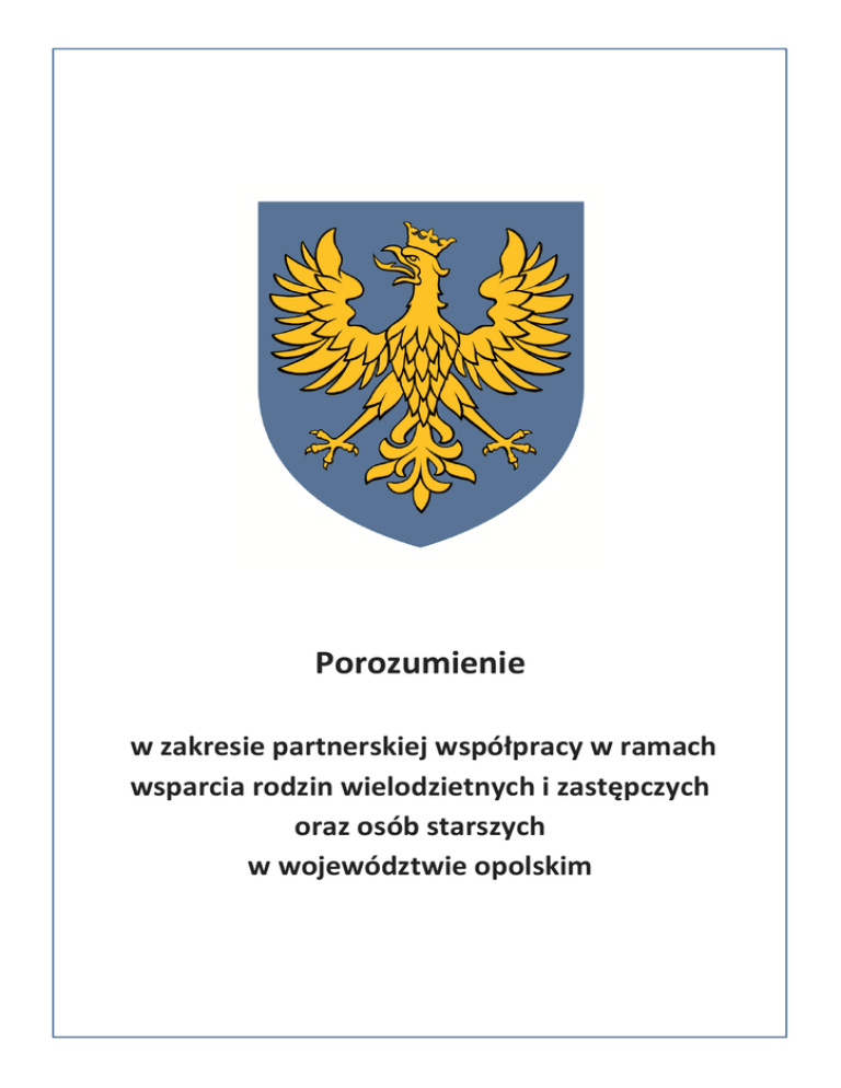 Porozumienie w zakresie partnerskiej współpracy w ramach wsparcia rodzin wielodzietnych i zastępczych oraz osób starszych w województwie opolskim W dniu 17 września 2013 roku, uwzględniając Program Polityki Rodzinnej Prezydenta Rzeczypospolitej Polskiej „Dobry klimat dla rodziny” oraz koncepcję Programu Specjalnej Strefy Demograficznej w Województwie Opolskim, w obecności Prezydenta Rzeczypospolitej Polskiej Pana Bronisława Komorowskiego, Województwo Opolskie, reprezentowane przez Pana Józefa Sebestę, Marszałka Województwa Opolskiego oraz gmina Baborów reprezentowana przez Panią Elżbietę Kielską – Burmistrza Baborowa, gmina Bierawa reprezentowana przez Pana Krzysztofa Ficonia – p.f. Wójta Bierawy, gmina Brzeg reprezentowana przez Pana Wojciecha Huczyńskiego – Burmistrza Brzegu, gmina Chrząstowice reprezentowana przez Panią Helenę Rogacką – Wójta Chrząstowic, gmina Dąbrowa reprezentowana przez Pana Marka Leję – Wójta Dąbrowy, gmina Dobrodzień reprezentowana przez Panią Różę Koźlik – Burmistrza Dobrodzienia, gmina Dobrzeń Wielki reprezentowana przez Pana Henryka Leona Wróbla – Wójta Dobrzenia Wielkiego, gmina Głubczyce reprezentowana przez Pana Jana Krówkę – Burmistrza Głubczyc, gmina Głuchołazy reprezentowana przez Pana Edwarda Szupryczyńskiego – Burmistrza Głuchołaz, gmina Gogolin reprezentowana przez Pana Joachima Wojtalę – Burmistrza Gogolina, gmina Gorzów Śląski reprezentowana przez Pana Artura Tomalę – Burmistrza Gorzowa Śląskiego, gmina Jemielnica reprezentowana przez Pana Joachima Jelito – Wójta Jemielnicy, gmina Kędzierzyn-Koźle reprezentowana przez Pana Tomasza Wantułę – Prezydenta Kędzierzyna-Koźla, gmina Kietrz reprezentowana przez Pana Józefa Matelę – Burmistrza Kietrza, gmina Kluczbork reprezentowana przez Pana Jarosława Kielara – Burmistrza Kluczborka, gmina Kolonowskie reprezentowana przez Pana Norberta Kostona – Burmistrza Kolonowskiego, gmina Krapkowice reprezentowana przez Pana Romualda Harafa – Zastępcę Burmistrza Krapkowic, gmina Leśnica reprezentowana przez Pana Łukasza Jastrzembskiego – Burmistrza Leśnicy, gmina Lewin Brzeski reprezentowana przez Pana Artura Kotarę – Burmistrza Lewina Brzeskiego, gmina Lubrza reprezentowana przez Pana Krzysztofa Barwieńca – Zastępcę Wójta Lubrzy, gmina Lubsza reprezentowana przez Pana Bogusława Gąsiorowskiego – Wójta Lubszy, gmina Łambinowice reprezentowana przez Pana Tomasza Karpińskiego – Wójta Łambinowic, gmina Łubniany reprezentowana przez Pana Krystiana Baldy – Wójta Łubnian, gmina Murów reprezentowana przez Pana Andrzeja Puławskiego – Wójta Murowa, gmina Nysa reprezentowana przez Panią Jolantę Barską – Burmistrza Nysy, gmina Olesno reprezentowana przez Pana Sylwestra Lewickiego – Burmistrza Olesna, gmina Olszanka reprezentowana przez Panią Anetę Rabczewską – Wójta Olszanki, gmina Opole reprezentowana przez Pana Krzysztofa Kawałko – Pierwszego Zastępcę Prezydenta Opola, gmina Otmuchów reprezentowana przez Pana Jana Woźniaka – Burmistrza Otmuchowa, gmina Ozimek reprezentowana przez Pana Marka Korniaka – Burmistrza Ozimka, gmina Paczków reprezentowana przez Pana Bogdana Wyczałkowskiego – Burmistrza Paczkowa, gmina Pawłowiczki reprezentowana przez Pana Jerzego Treffona – Wójta Pawłowiczek, gmina Pokój reprezentowana przez Panią Barbarę Zając – Wójta Pokoju, gmina Polska Cerekiew reprezentowana przez Panią Krystynę Helbin – Wójta Polskiej Cerekwi, gmina Popielów reprezentowana przez Pana Dionizego Duszyńskiego – Wójta Popielowa, gmina Prudnik reprezentowana przez Pana Franciszka Fejdycha – Burmistrza Prudnika, gmina Reńska Wieś reprezentowana przez Pana Mariana Wojciechowskiego – Wójta Reńskiej Wsi, gmina Rudniki reprezentowana przez Panią Iwonę Napieraj – Zastępcę Wójta Rudnik, gmina Skarbimierz reprezentowana przez Pana Andrzeja Pulita – Wójta Skarbimierza, gmina Skoroszyce reprezentowana przez Panią Alinę Baran – Wójta Skoroszyc, gmina Tułowice reprezentowana przez Pana Wiesława Plewę – Wójta Tułowic, gmina Turawa reprezentowana przez Pana Waldemara Kampę – Wójta Turawy, gmina Walce reprezentowana przez Pana Bernarda Kubatę – Wójta Walec, gmina Wołczyn reprezentowana przez Pana Jana Leszka Wiącka – Burmistrza Wołczyna, gmina Zawadzkie reprezentowana przez Pana Mieczysława Orgackiego – Burmistrza Zawadzkiego, gmina Zdzieszowice reprezentowana przez Pana Dietera Przewdzinga – Burmistrza Zdzieszowic, podpisują niniejsze Porozumienie. Strony, dostrzegając konieczność realizacji konsekwentnych działań przyjaznych rodzinie i osobom starszym, wspierając rodzicielskie aspiracje mieszkańców, mając na uwadze zmiany demograficzne jakich doświadcza województwo opolskie, w tym wzrost populacji osób starszych, zgadzają się że: 1. zapobieganie i przeciwdziałanie procesom depopulacji stanowi kluczowe, horyzontalne i najważniejsze wyzwanie, przed którym stanęło województwo opolskie; 2. polityce odnowy demograficznej, traktowanej jako inwestycja w potencjał rozwojowy województwa opolskiego, towarzyszyć powinno wzmacnianie samodzielności finansowej rodzin wychowujących dzieci, zwłaszcza rodzin wielodzietnych; 3. rosnąca populacja osób starszych, wynikająca głównie z wydłużania się przeciętnego trwania życia, wymaga intensyfikacji działań skierowanych do osób starszych i niesamodzielnych, w tym aktywnego i szerokiego włączenia wymienionych grup osób w przestrzeń społecznogospodarczą. Gminy z terenu województwa opolskiego deklarują wolę partnerskiej współpracy w ramach wsparcia rodzin wielodzietnych i zastępczych oraz osób starszych w województwie opolskim. Działania Województwa Opolskiego oraz gmin z terenu województwa opolskiego w ramach Porozumienia obejmują w szczególności: 1. inicjowanie i realizację kompleksowych projektów lub działań wspieraj
