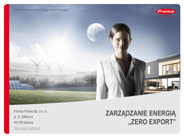 Fronius Polska Sp. z o. o. ul. G. Eiffel’a 8 44-109 Gliwice http://www.fronius.pl ZARZĄDZANIE ENERGIĄ „ZERO EXPORT” PRZEGLĄD / Zarządzanie wprowadzaniem energii do sieci (ang. feed-in management) / Operatorzy sieci energetycznej w wielu krajach coraz częściej wymagają ograniczenia oddawanej do sieci energii jako warunek przyłączenia do tej sieci. Dzięki dynamicznej redukcji mocy, Fronius oferuje rozwiązania dla optymalnego zarządzania wprowadzaniem do sieci produkowanej w instalacjach fotowoltaicznych energii. Falownik zasila odbiorniki w gospodarstwie domowym, a następnie ogranicza wydajność systemu do maksymalnej wartości energii dozwolonej przez operatora sieci. / Co nowego? / Z falownikami Fronius, ograniczenie wypływu do 0% (ang. zero-feed-in lub zero export) jest również możliwe, co oznacza, że żadna energia z instalacji PV nie jest oddawana do sieci. Odpowiednie wymagania operatora sieci mogą być spełnione poprzez proste ustawienia w interfejsie WWW falownika. / Wszystkie falowniki Fronius SnapINverters (z wyjątkiem Fronius Symo Hybrid) oferują tę funkcję 1). 1) proszę 2 zapoznać się z wymaganiami systemowymi. Fronius International GmbH / Zero export / 04.2016 - v01 WYMAGANIA SYSTEMOWE DLA „ZERO EXPORT” / Wymagania sprzętowe / falownik Fronius SnapINverter 1) ze zintegrowaną kartą Fronius Datamanager 2.0 lub Fronius Datamanager Box 2.0 / Fronius Smart Meter 2) / Fronius Smart Meter 63A-1 / Fronius Smart Meter 63A-3 / Fronius Smart Meter 50kA-3 1) Fronius Symo Hybrid obecnie obsługuje maksymalny limit mocy = 10%. 2) funkcja „zero export” nie może być zagwarantowane z licznikiem z interfejsem impulsowym S0. / Wymagania dot. oprogramowania / Datamanager z wersją firmware 3.5.1-2 lub nowszą / Falowniki ze starszym oprogramowaniem wymagają aktualizacji oprogramowania sprzętowego 3 Fronius International GmbH / Zero export / 04.2016 - v01 KONFIGURACJA / Ustawienie może być dokonane poprzez interfejs WWW falownika Zakres regulacji: -10% do 100% całkowitej mocy DC Wartość wyrażona w procentach lub Watach 4 Fronius International GmbH / Zero export / 04.2016 - v01 SCHEMAT POŁĄCZEŃ Fronus Smart Meter może również być zainstalowany w torze odbiorów. 5 Fronius International GmbH / Zero export / 04.2016 - v01 SPECYFIKACJA „ZERO EXPORT” / Dostępny zakres 1): -10% to 100% / Czas regulacji 1): < 5 sekund / Stosuje się tylko do następującej konfiguracji systemu: / 1 - 5 Fronius SnapINverter 2) / 1 Fronius Datamanager 2.0 / 1 Fronius Smart Meter / Bilansowanie międzyfazowe (ang. phase-balanced) / Odporność na awarie: / Jeśli połączenie między Fronius Datamanager oraz Fronius Smart Meter zostanie przerwane, falownik zmniejsza moc do ustalonej wartości. 6 1) Dotyczy wszystkich falowników Fronius SnapINverters z wyjątkiem Fronius Symo Hybrid. 2) Dla instalacji > 5 falowników Fronius SnapINverters, czas regulacji poniżej 5 sekund nie może być zagwarantowany. Fronius International GmbH / Zero export / 04.2016 - v01 DOSTĘPNE DOKUMENTY / DYNAMICZNA REDUKCJA MOCY W FALOWNIKACH FRONIUS SNAPINVERTER – dokument dla projektantów / DEKLARACJA PRODUCENTA / ULOTKA „ZERO EXPORT” 7 Fronius International GmbH / Zero export / 04.2016 - v01 All information is without guarantee in spite of careful editing - liability excluded. Intellectual property and copyright: all rights reserved. Copyright law and other laws protecting intellectual property apply to the content of this presentation and the documentation enclosed (including texts, pictures, graphics, animations etc.) unless expressly indicated otherwise. It is not permitted to use, copy or alter the content of this presentation for private or commercial purposes without explicit consent of Fronius.