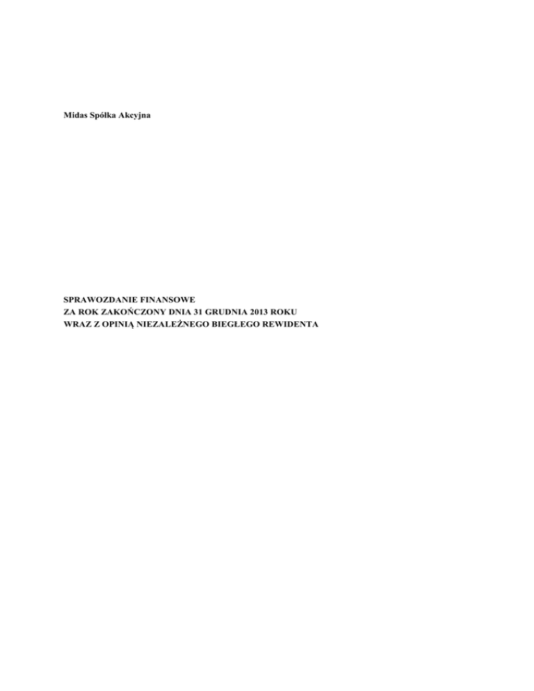 Sprawozdanie finansowe za rok zakończony dnia 31 grudnia 2013 roku
