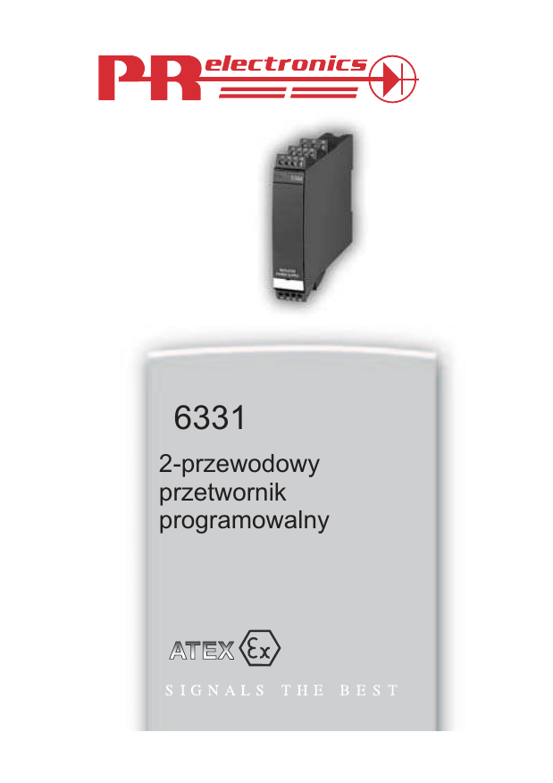 6331 2-przewodowy przetwornik programowalny 2-przewodowy przetwornik programowalny 6331 PRetrans Spis treœci Instrukcje bezpieczeñstwa................................... 3 Deklaracja zgodnoœci........................................... 4 Aplikacje...............................................................5 Charakterystyka techniczna................................. 5 Monta¿/instalacja................................................. 5 Aplikacje...............................................................6 Specyfikacja......................................................... 7 Parametry elektryczne......................................... 7 Pod³¹czenie......................................................... 11 Schemat blokowy................................................. 12 Programowanie.................................................... 13 Specyfikacja mechaniczna.................................. 13 2 Instrukcja bezpieczeñstwa Instalacja w strefie EX IInstalacja przetwornika 6331B w strefie zagro¿onej wybuchem mo¿e byæ przeprowadzona tylko przez wykwalifikowany personel, który jest zaznajomiony z miêdzynarodowymi prawami, dyrektywami oraz standardami dotycz¹cymi stref zagro¿onych. 3 DEKLARACJA ZGODNOŒCI Producent PR electronics A/S Lerbakken 10 DK-8410 Rønde niniejszym deklaruje, ¿e poni¿szy produkt: Typ: 6331 Nazwa: 2-przewodowy przetwornik programowalny zosta³ wyprodukowany zgodnie z poni¿szymi dyrektywami i standardami: Dyrektywa EMC 89/336/EEC i póŸniejsze uaktualnienia Od nr. seryjnego: 000032001 ff EN 61 326 EN 50 081-1, EN 50 081-2 EN 50 082-1, EN50 082-2 Ta deklaracja jest wydana w zgodzie z art. 10, podpunkt 1 dyrektywy o EMC. Wszystkie parametry dotycz¹ce dopuszczalnego poziomu emisji EMC znajduj¹ siê w specyfikacji elektrycznej modu³u. Dyrektywa ATEX 94/9/EC i póŸniejsze uaktualnienia Od nr. seryjnego: 000032001 ff EN 50 014 i EN 50 020 Certyfikat Ex: 99 ATEX 126958 Jednostka notyfikacyjna dla CENELEC/ATEX: UL International Demko A/S 0539 Rønde, 4 Jan. 2000 Peter Rasmussen Manufacturer’s signature 2-przewodowy przewodowy przetwornik programowalny 6331 PRetrans · Wejœcia RTD, TC, mV i liniowej rezystancji · Bardzo du¿a dok³adnoœæ pomiaru · Separacja galwaniczna wejœcia i wyjœcia · Mo¿liwoœæ instalacji w strefach Z0, Z1 i Z2 · Wersja 1- lub 2-kana³owa Zastosowanie: 1)Zlinearyzowany pomiar temperatury z zastosowaniem czujników Pt100 .. Pt1000, Ni100 .. Ni1000 oraz termopar. 2)Konwersja zmiany wartoœci liniowej rezystancji na standardowy analogowy sygna³ pr¹dowy, pochodz¹cy np. z zaworów lub rezystancyjnych czujników poziomu. 3)Transformacja symetrycznego sygna³u mV w standardowy sygna³ pr¹dowy z zakresu 4 .. 20 mA. Dane techniczne: U¿ytkownik w bardzo krótkim czasie ma mo¿liwoœæ zaprogramowania przetwornika 6331B do pomiarów temperatury we wszystkich zakresach definiowanych normami. Wejœcia RTD i lin. R maj¹ mo¿liwoœæ kompensacji rezystancji przewodów przy pod³¹czeniu 2-, 3- i 4-przewodowym. Mo¿liwoœæ zaprogramowania Limitów pr¹dowych na wyjœciu. Sta³a kontrola poprawnoœci przechowywanych danych. Monta¿ / instalacja: Monta¿ pionowy lub poziomy na szynie DIN. Przy zastosowaniu wersji 2-kana³owej mo¿liwe jest umieszczenie 84 kana³ów na 1mb szyny DIN. Jako separator dla modelu 6331B producent zaleca przetworniki: 5104B, 5111B oraz 5114B. 5 2-przewodowa instalacja w sterowni RTD na 4...20 mA V+ mA 2-przewodowa instalacja w sterowni TC na 4...20 mA V+ mA Rezystancja na 4...20 mA 2-przewodowa instalacja w sterowni V+ mA 2-przewodowa instalacja w sterowni mV na 4...20 mA V+ mA 6 Zamówienie: 6331 Typ Wersja 6331 Standard ATEX Separacja galwaniczna :A 1500 VAC :B Iloœæ kana³ów :2 Jeden kana³ Dwa kana³y :A :B Specyfikacja elektryczna: Temperatura pracy:............................................... -20...60°C Zasilanie z pêtli pomiarowej:................................. 7,2 .. 35 VDC Wersja EX 7,2 .. 28 VDC Spadek napiêcia:.................................................. 7,2 VDC Separacja galwaniczna:........................................ 1,5 kVAC Separacja galwaniczna ( kan1 / kan2):................. 3,75 kVAC Interfejs komunikacyjny:........................................ Loop Link 5905 Stosunek sygna³ / szum:....................................... min. 60 dB Czas odpowiedzi (program.):................................ 1 .. 60 s Dynamika sygna³u wejœciowego:.......................... 20 bitów Dynamika sygna³u wyjœciowego:........................... 16 bitów Dok³adnoœæ: Wartoœæ wiêksza z wartoœci ogólnych i podstawowych Wartoœci ogólne Typ wejœcia Wszystkie Dok³adnoœæ Wspó³czynnik temperaturowy £ ±0.05% zakresu £ ±0.01% zakresu / °C 7 Typ wejœcia Wartoœci podstawowe B³¹d Wspó³czynnik podstawowy temperaturowy RTD £ ± 0.2°C £ 0.01°C / °C Lin.R £ ± 0.1W £ ± 10mW / °C Volt £ ± 10mV £ ± 1mV / °C Ni 100 £ ± 0.2 C typ TC: E,J,K,L,N,T,U £±1C typ TC: B,R,S,W3,W5 £±2C o £ ± 0.005 °C / °C o £ ± 0.05 °C / °C o £ ± 0.2 °C / °C EMC - wp³yw zewn. pól EM.............................. < ±0,5% zakresu NAMUR NE 21, kryterium A ............................ < ±1% zakresu Wilgotnoœæ wzglêdna:........................................... < 95% RH Wymiary:.........................................................109 x 23,5 x 104 mm Stopieñ ochrony:................................obudowa: IP50, zaciski: IP20 Specyfikacja elektryczna wejœcia: Max offset:............................................................ 50% max wart. Wejœcia RTD i lin. R: Typ RTD Pt 100 Ni 100 Lin. R Wartoœæ minimalna - 200 oC o - 60 C 0W Wartoœæ maksymalna o +850 C o +250 C 5000W Minimalny zakres o 25 C o 25 C 30W Rezystancja kabla (na przewód)....................... 5W Pr¹d czujnika.................................................... nom. 0.2 mA 8 Wejœcie TC: Minimalna Typ temperatura B E J K L N R S T U W3 W5 +400OC O -100 C O -100 C O -180 C 