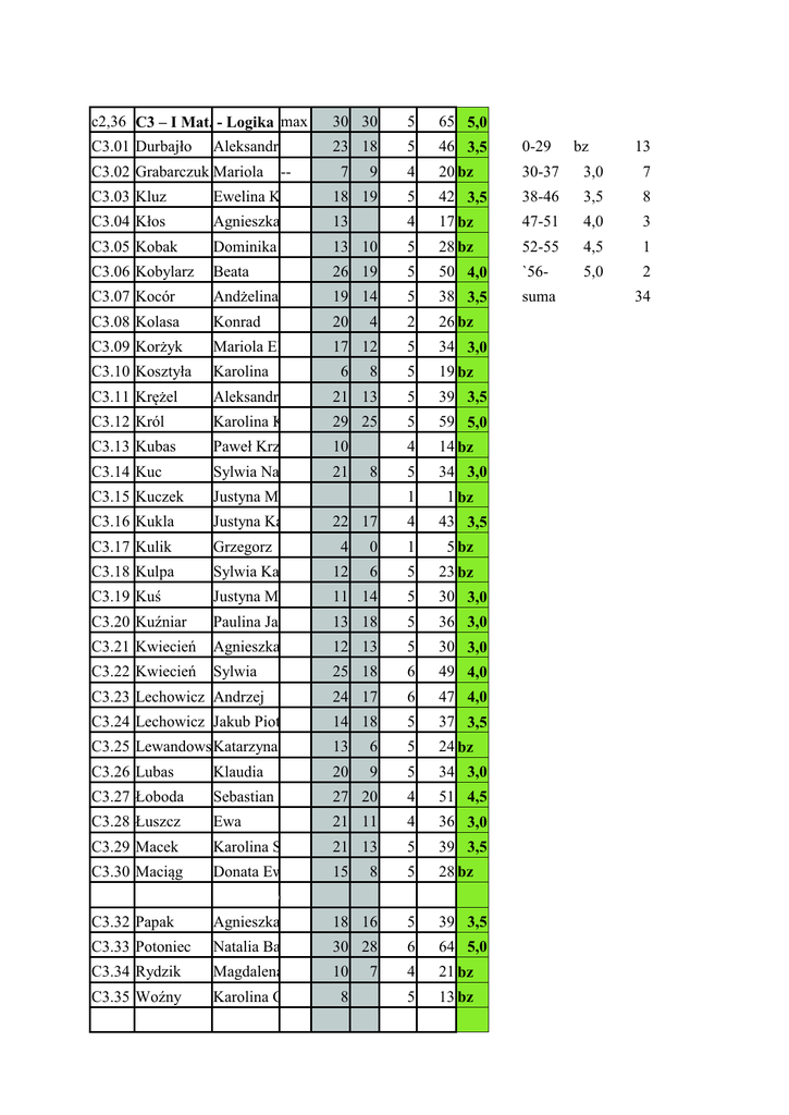 c2,36 C3 ± I Mat. Logika max 30 30 5 65 5,0 C3.01 AleNsandra