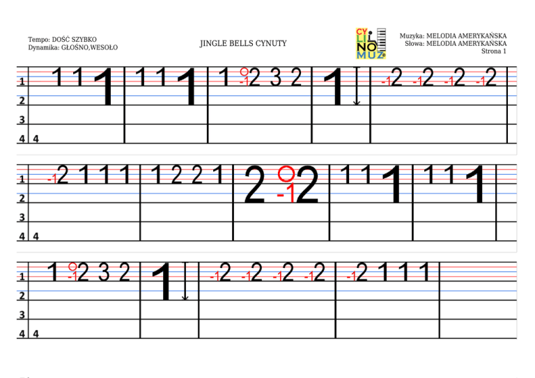 Tempo: DOŚĆ SZYBKO Dynamika: GŁOŚNO,WESOŁO JINGLE BELLS CYNUTY Muzyka: MELODIA AMERYKAŃSKA Słowa: MELODIA AMERYKAŃSKA Strona 1 Tempo: DOŚĆ SZYBKO Dynamika: GŁOŚNO,WESOŁO JINGLE BELLS CYNUTY Muzyka: MELODIA AMERYKAŃSKA Słowa: MELODIA AMERYKAŃSKA Strona 2