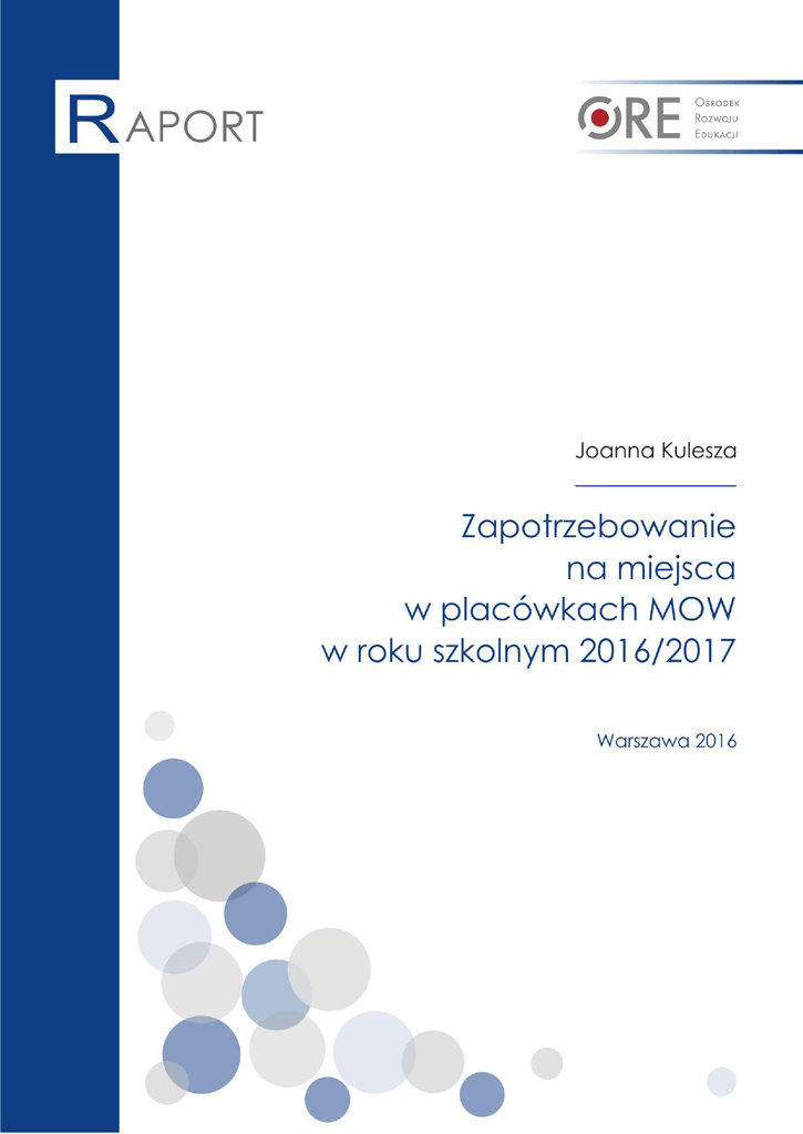 Konsultacja merytoryczna Katarzyna Kopystyńska Redakcja i korekta Elżbieta Gorazińska Projekt okładki, redakcja techniczna i skład Barbara Jechalska W projekcie graficznym wykorzystano elementy projektu Studia Kreatywnego Małgorzaty Barskiej © Copyright by Ośrodek Rozwoju Edukacji Warszawa 2016 Ośrodek Rozwoju Edukacji 00-479 Warszawa Aleje Ujazdowskie 28 www.ore.edu.pl Spis treści Wstęp................................................................................................................. 4 Cel raportu ......................................................................................................... 5 Analiza danych ................................................................................................... 6 Tabelaryczna ilustracja danych ........................................................................... 9 Spis tabel .......................................................................................................... 15 Joanna Kulesza • Zapotrzebowanie na miejsca w placówkach MOW w r. szk. 2016/2017 • Wstęp Raport dotyczy zapotrzebowania na miejsca w poszczególnych szkołach i klasach dla wychowanków młodzieżowych ośrodków wychowawczych (MOW) w roku szkolnym 2016/2017 i uwzględnia uwarunkowania związane z płcią oraz poziomem rozwoju intelektualnego nieletnich. Jak corocznie, został opracowany na podstawie danych pochodzących z systemu teleinformatycznego, tzw. centralnego systemu kierowania nieletnich do placówek resocjalizacyjnych i socjoterapeutycznych. Podobnie jak w roku ubiegłym analiza nie obejmuje sytuacji młodzieżowych ośrodków socjoterapii (MOS), ponieważ już 94% wychowanków tych ośrodków stanowią uczniowie umieszczeni na wniosek rodziców, bez udziału Ośrodka Rozwoju Edukacji oraz centralnego systemu teleinformatycznego1. W związku z tym ORE nie dysponuje danymi pozwalającymi przeanalizować zapotrzebowanie na miejsca w MOS-ach. Instytucjami kompetentnymi do przybliżonego określenia zapotrzebowania na miejsca dla dzieci zagrożonych niedostosowaniem społecznym będą lokalne poradnie psychologiczno-pedagogiczne wydające orzeczenia o potrzebie kształcenia specjalnego. Według danych Systemu Informacji Oświatowej (SIO) z 30 września 2015 r. w Polsce funkcjonuje 97 młodzieżowych ośrodków wychowawczych. Do centralnego systemu kierowania nieletnich w roku szkolnym 2015/2016 zgłoszono 95 MOW-ów z łączną liczbą 5 830 miejsc. W stosunku do roku ubiegłego jeden MOW został zamknięty, dwa ośrodki nie prowadzą naboru w roku szkolnym 2015/2016, jeden MOW uruchomiono w styczniu 2016 r. Do kwietnia 2016 r. do Wydziału Resocjalizacji i Socjoterapii ORE dotarła informacja o planach uruchomienia w roku szkolnym 2016/2017 jednego nowego ośrodka wychowawczego oraz planach zamknięcia jednego ośrodka. Wydział powziął też wiadomości o zamiarach zwiększenia liczby miejsc w już funkcjonujących ośrodkach, jednak do rozpoczęcia nowego roku szkolnego sytuacja ta może się zmienić. 1 W młodzieżowych ośrodkach socjoterapii przebywają wychowankowie umieszczeni na podstawie wniosku rodziców oraz orzeczenia poradni psychologiczno-pedagogicznej o potrzebie kształcenia specjalnego ze względu na zagrożenie niedostosowaniem społecznym (art. 71b ustawy o systemie oświaty), a także nieletni umieszczeni na podstawie postanowienia sądu rodzinnego o zastosowaniu takiego środka wychowawczego (postanowienie wydane przed 1 stycznia 2012 r.). Liczba nieletnich, o których postanowił sąd, w stosunku do liczby wychowanków umieszczonych na wniosek rodziców systematycznie maleje. Obecnie na podstawie postanowienia sądowego nie oczekuje na umieszczenie żaden nieletni, jednocześnie we wszystkich MOS-ach przebywa 91 nieletnich, czyli 3% ogółu wszystkich wychowanków placówek socjoterapeutycznych. W analogicznym okresie roku 2015 wychowankowie umieszczeni na podstawie postanowienia sądowego stanowili 6%, w 2014 – 19%, w 2013 – 41%, a w 2012 – 66%. Tym samym wychowankowie umieszczani w MOS-ach na wniosek rodziców stanowią ponad 95% wszystkich uczniów placówki. Według danych Systemu Informacji Oświatowej (SIO) z 30 września 2015 r. w Polsce funkcjonuje 80 młodzieżowych ośrodków socjoterapii, jednak do centralnego systemu kierowania nieletnich w roku szkolnym 2015/2016 zgłoszono 73 MOS-y mogące przyjąć około 4 400 wychowanków. 4 Joanna Kulesza • Zapotrzebowanie na miejsca w placówkach MOW w r. szk. 2016/2017 • Cel raportu Raport powstał w związku ze zbliżającym się terminem opracowywania i zatwierdzania arkuszy organizacyjnych szkół funkcjonujących w strukturach placówek resocjalizacyjnych. Przedstawiono w nim wyniki analizy zapotrzebowania na miejsca w poszczególnych szkołach i klasach z odniesieniem do stanu faktycznego w roku szkolnym 2015/2016. Wychowankowie są przyjmowani do młodzieżowych ośrodków wychowawczych na podstawie postanowienia sądu rodzinnego o zastosowaniu środka wychowawczego w postaci umieszczenia w MOW-ie. Procedura umieszczenia w placówce odbywa się z wykorzystaniem systemu teleinformatycznego. Wniosek o znalezienie miejsca w ośrodku składa starosta właściwy dla miejsca zamieszkania nieletniego, a w przypadku braku miejsca zamieszkania – starosta właściwy ze względu na miejsce pobytu nieletniego. Następnie Ośrodek Rozwoju Edukacji wskazuje nieletniemu odpowiednie miejsce w placówce resocjalizacyjnej, uwzględniając m.in. płeć, poziom rozwoju intelektualnego, etap edukacji, miejsce zamieszkania nieletniego. Jak już wspomniano, poniższa analiza opiera się na danych z teleinformatycznego systemu kierowania nieletnich do placówek resocjalizacyjnych resortu edukacji (dane z 5 kwietnia 2016 r.). Prezentowane informacje dotyczą wyłącznie nieletnich, wobec których sądy rodzinne postanowiły zastosować środek wychowawczy w postaci umieszczenia w placówce typu MOW i którzy w związku z tym zostali zgłos
