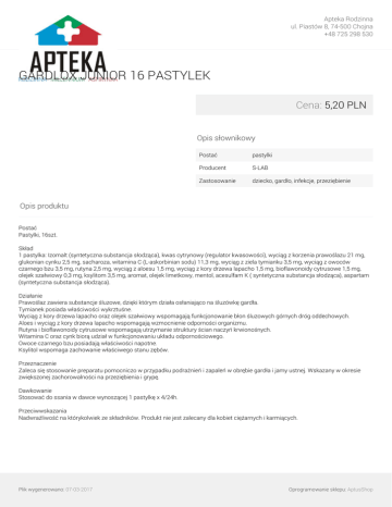 gardlox junior 16 pastylek - Apteka internetowa aptekachojna.pl