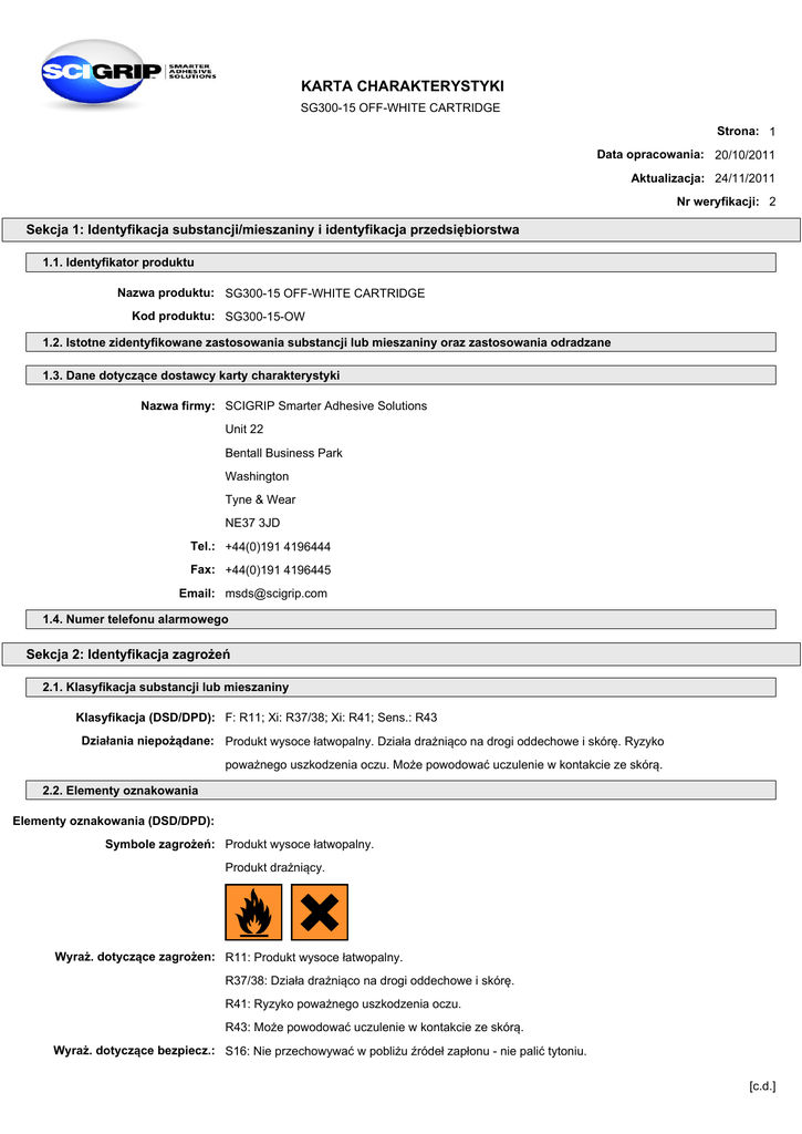 Scigrip SG300-15 (kremowy) Karta bezpieczeństwa