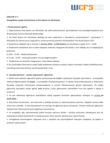 Załącznik nr 1 Szczegółowe zasady Uczestnictwa w Dniu Sportu we