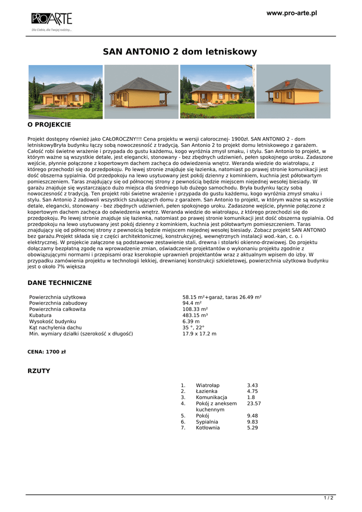 SAN ANTONIO 2 dom letniskowy - Pro-arte