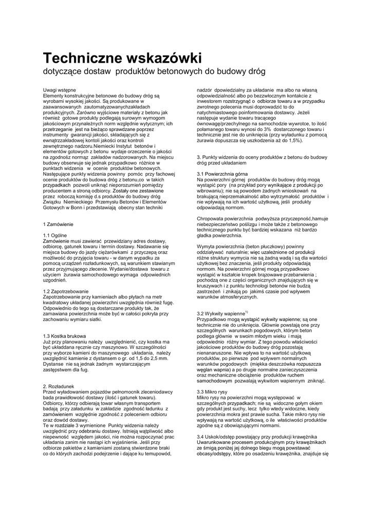 dotycz ce dostaw produktów betonowych do budowy dróg