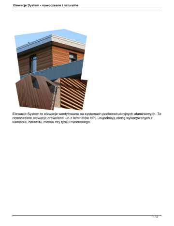 Elewacje System - nowoczesne i naturalne Elewacje System to elewacje wentylowane na systemach podkonstrukcyjnych aluminiowych. Te nowoczesne elewacje drewniane lub z laminatów HPL uzupełniają ofertę wykonywanych z kamienia, ceramiki, metalu czy tynku mineralnego. 1/2 Elewacje System - nowoczesne i naturalne Elewacje Niemiec drewna procesie drewniane na podczas którejest imiały transportu. wzrastania drewniane Kanady. możecie występowanie wpływ Drewno mieć drewna wykonywane np. wady Państwo sęków, jest i stanowią obróbki, produktem są żywicy, pewność, z drewna ouszkodzenia jego rdzeni naturalnym że niepowtarzalności profilowanego otrzymacie czy produkcyjne przebarwień -cechą produkty renomowanych naturalną i lub urodzie. - wszystkie wolne uszkodzenia produktów Wybierając oddostawców one wszelkich powstają powstałe z litego elewacje wad, z w Materiały Nasz drewna tym profili doradca i laminatów. używane z drewna techniczny do cedrowego. Świadczymy wykonania udzieli szeregu kompleksowe elewacjiinformacji posiadają usługi co niezbędne montażowe do warunkow atesty oraz ogólnych i wymagania sprzedaż dla systemów montażu techniczne. w Więcej szczegółów na: http://www.elewacjesystem.pl/ 2/2