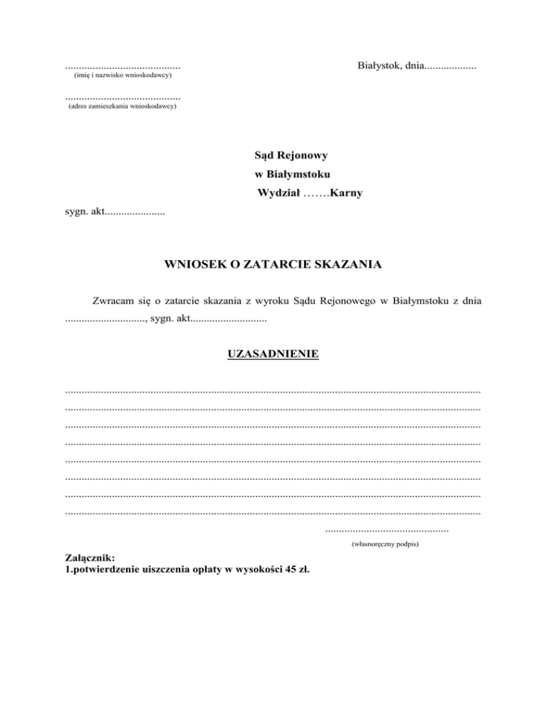 wniosek o zatarcie skazania - Sąd Rejonowy w Białymstoku