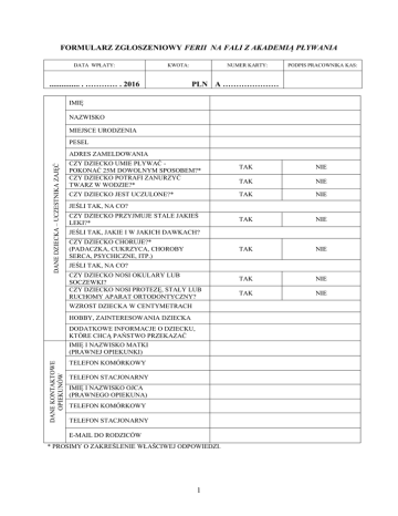 1 formularz zgłoszeniowy ferii na fali z akademią pływania