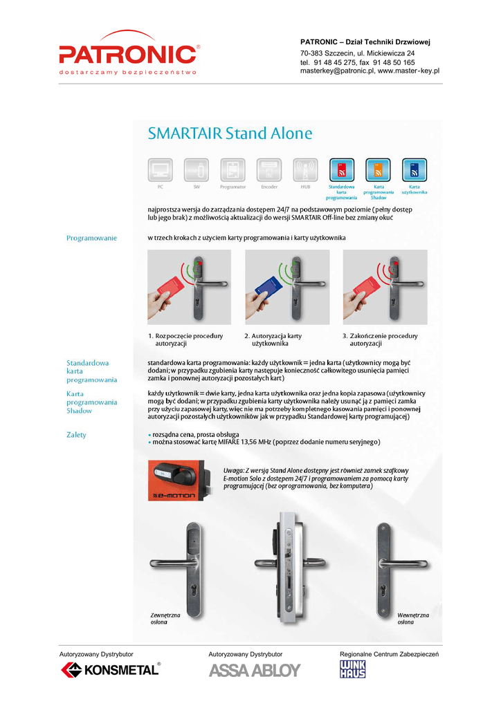 PATRONIC – Dział Techniki Drzwiowej 70-383 Szczecin, ul. Mickiewicza 24 tel. 91 48 45 275, fax 91 48 50 165 [email protected], www.master - key.pl Autoryzowany Dystrybutor Autoryzowany Dystrybutor Regionalne Centrum Zabezpieczeń