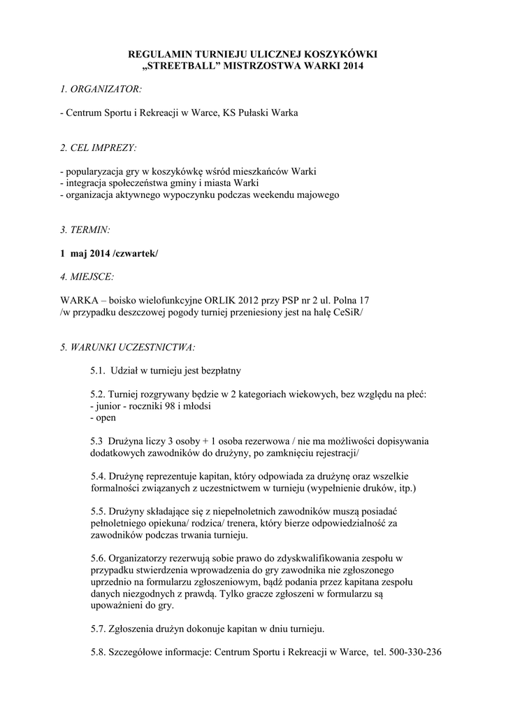 regulamin turnieju ulicznej koszykówki 2014
