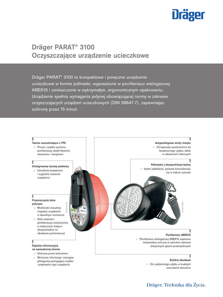 Dräger PARAT® 3100 Oczyszczające urządzenie ucieczkowe