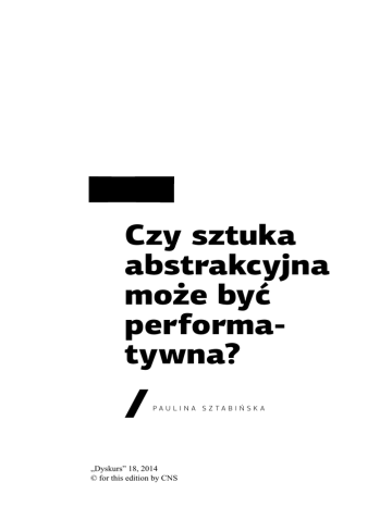 Czy sztuka abstrakcyjna może być performatywna? Paulina Sz tabińsk a „Dyskurs” 18, 2014 © for this edition by CNS #6 O 135 Odniesienia do form geometrycznych, pojawiające się w sztuce europejskiej od okresu starożytności, związane były z dążeniem do osiągnięcia stałości i nienaruszalności. Dotyczyło to zarówno stosowanych kształtów, jak układów. W porównaniu z zarysami przedmiotów występujących w przyrodzie formy geometryczne wydają się proste i łatwe do ujęcia myślowego. Za najdoskonalsze z nich uważa się ponadto te, którym cechy owe przysługują w stopniu największym, na przykład kwadrat jest najdoskonalszym z prostokątów, a wszystkie inne figury tego typu można uznać za przypadkowe i zmienne modyfikacje jego cech. Podobnie jest w przypadku trójkąta równobocznego i innych odmian trójkątów. Analogiczna sytuacja ma miejsce w odniesieniu do układów elementów. Poszukując ich zasad na drodze dociekań geometryczno-arytmetycznych starano się odkryć porządek stały, nienaruszalny. Dążenia te łączono początkowo nie tyle z celami estetycznymi, ile z pragnieniami poznawczymi. Platon uważał, że kontakt z kształtami geometrycznymi powoduje, że oczyszcza się pewien organ duszy i rozpłomienia się na nowo, jeżeli marnieć zaczął i ślepnąć pod wpływem innych zajęć1. Grecki filozof precyzował, że następuje to, gdyż „Dyskurs” 18, 2014 © for this edition by CNS 136 Paulina Sztabińska poznanie geometryczne dotyczy tego, co istnieje wiecznie 2, zbliża człowieka, który je uprawia, ku światu Idei. Natomiast struktury kompozycyjne oparte na zasadach geometryczno-arytmetycznych uważano w starożytnej Grecji za ujawnienie praw harmonii bytu. Zmiany czy poprawki, jakie w nich były wprowadzane, wyjaśniano stopniowym procesem ich ustalania, poszukiwaniem prawdziwej ich postaci. Władysław Tatarkiewicz pisał: Założeniem ustalania kanonu było, ze jest jedna proporcja z wszystkich najdoskonalsza; było to założenie filozoficzne: szukali kanonu artyści, ale pobudzeni do swych poszukiwań przez filozofów3. Proporcji i zasad układu elementów nie wolno było więc arbitralnie zmieniać. Przekonania te utrwaliły się w dziejach europejskiej sztuki i myśli estetycznej. Wprawdzie w późniejszych wiekach uzasadnienia poznawcze osłabły lub nawet zanikły, jednak to, co ma geometryczne źródła lub motywacje w sztuce antycznej, cieszyło się w wielu okresach autorytetem, który przeciwdziałał wprowadzaniu zmian motywowanych przez inny czas i miejsce. Pojawia się w związku z tym pytanie, czy uwagi te można odnieść także do dwudziestowiecznej sztuki abstrakcyjnej? Słowo „abstrakcja” w odniesieniu do nowoczesnej działalności artystycznej, jak zauważa Harold Osborne, używane jest w dwóch znaczeniach. Pierwsze, szersze, odnosi się do nieikonicznej twórczości nazywanej także „nieprzedstawiającą”, „niefiguratywną” lub „bezprzedmiotową”. Drugie znaczenie, węższe, określa sposób przedstawiania widzialnych przedmiotów w sposób redukujący ilość ich cech szczegółowych, indywidualnych 4. Zarówno w tytule mojego artykułu, jak w postawionym przed chwila pytaniu, biorę pod uwagę pierwszy, szeroki sens określenia „abstrakcja artystyczna”. W tak pojętej sztuce abstrakcyjnej istotną część stanowi twórczość odwołująca się do geometrii. Uważam, że w pierwszej połowie XX wieku występowało wyraźne nawiązanie do scharakteryzowanej tu greckiej tradycji, a nawet jej radykalizacja. Omówię krótko ten problem na przykładzie twórczości dwóch malarzy: Pieta Mondriana i Theo Van Doesburga. Pierwszego uznać można za wybitnego przedstawiciela sztuki abstrakcyjnej uwzględniającego obydwa z wymienionych wyżej znaczeń słowa „abstrakcja”. Drugi natomiast rozwijał koncepcję „sztuki konkretnej” odrzucając jakiekolwiek odtwarzanie rzeczywistości, także proces stopniowego abstrahowania, jako metodę postępowania malarskiego. Ewolucja twórcza Mondriana przebiegała bardzo konsekwentnie. Artysta rozpoczynał od przedstawiania (czasami bardzo szczegółowo) „Dyskurs” 18, 2014 © for this edition by CNS 137 Czy sztuka abstrakcyjna może być performatywna? wybranych fragmentów rzeczywistości: drzewa, fragmentu morza z niewielkim molo, fasady kościoła. Następnie, w seriach obrazów i rysunków będących opracowaniem tych motywów, utrwalał swe decyzje dotyczące możliwości pomijania pewnych składników widzialnej rzeczywistości, uznanych przez niego za nieistotne. Kolejny etap jego działalności związany był z nadaniem temu postępowaniu charakteru bardziej uniwersalnego. O ile początkowo abstrahowanie dotyczyło pojedynczych cech obiektów, później artysta postawił sobie za cel ukazanie nie istoty przedmiotu (czy tego, co wspólne dla ich klasy), a ogólnej istoty rzeczywistości – „uniwersalnej harmonii”5, jak to określał. Uważany za istotny w życiu codziennym podział na poszczególne przedmioty tracił w związku z tym znaczenie. Rozpoznanie tego, co stanowiło widzialny punkt wyjścia obrazu, stawało się niemożliwe i nieistotne. Obok zwykłego patrzenia Mondrian uwzględniał „czyste widzenie” ujawniające ogólną, podstawową zasadę świata, która ukazana miała być w obrazach. W 1918 roku w artykule Od naturalnego do abstrakcyjnego, zamieszczonym w czasopiśmie „De Stijl”, pisał: Czyste widzenie pokazuje nam tę pierwotną jedność jako stałą siłę we wszystkich rzeczach, jako uniwersalnie podzielaną siłę, która przenika wszystkie rzeczy6. Czyste widzenie w tym przypadku to sposób ujmowania rzeczywistości odzierający ją z konkretnych, jednostkowych różnic: rozmiarów, kształtów lub jakości i ujmujące w postaci wyabstrahowanych stosunków. W obrazach swych Mondrian wyrażał te stosunki poprzez relacje linii prostych przecinających się pod kątem 90 stopni i prostokątów zamalowanyc