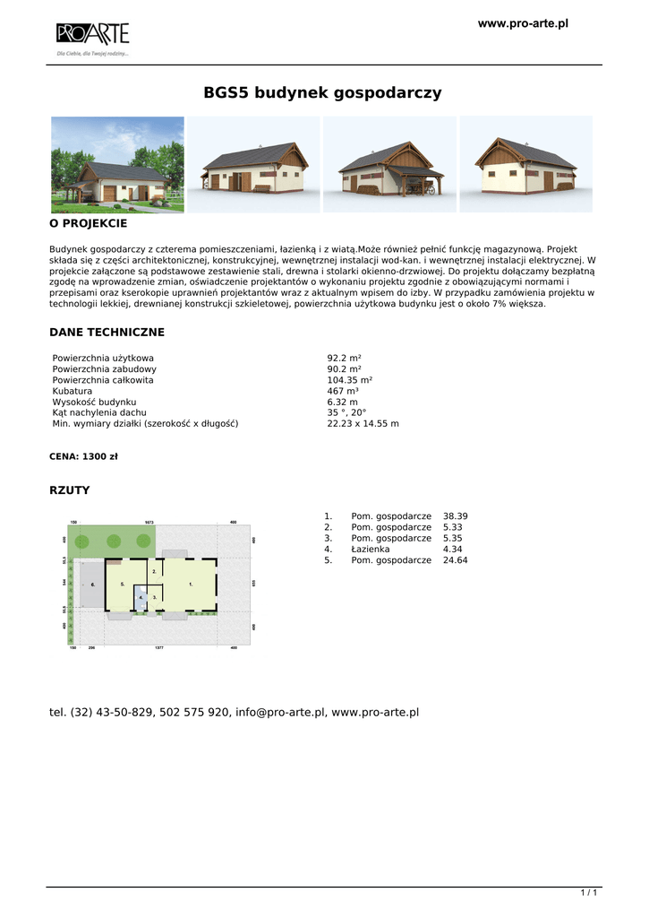 www.pro-arte.pl BGS5 budynek gospodarczy O PROJEKCIE Budynek gospodarczy z czterema pomieszczeniami, łazienką i z wiatą.Może również pełnić funkcję magazynową. Projekt składa się z części architektonicznej, konstrukcyjnej, wewnętrznej instalacji wod-kan. i wewnętrznej instalacji elektrycznej. W projekcie załączone są podstawowe zestawienie stali, drewna i stolarki okienno-drzwiowej. Do projektu dołączamy bezpłatną zgodę na wprowadzenie zmian, oświadczenie projektantów o wykonaniu projektu zgodnie z obowiązującymi normami i przepisami oraz kserokopie uprawnień projektantów wraz z aktualnym wpisem do izby. W przypadku zamówienia projektu w technologii lekkiej, drewnianej konstrukcji szkieletowej, powierzchnia użytkowa budynku jest o około 7% większa. DANE TECHNICZNE Powierzchnia użytkowa Powierzchnia zabudowy Powierzchnia całkowita Kubatura Wysokość budynku Kąt nachylenia dachu Min. wymiary działki (szerokość x długość) 92.2 m² 90.2 m² 104.35 m² 467 m³ 6.32 m 35 °, 20° 22.23 x 14.55 m CENA: 1300 zł RZUTY 1. 2. 3. 4. 5. Pom. gospodarcze Pom. gospodarcze Pom. gospodarcze Łazienka Pom. gospodarcze 38.39 5.33 5.35 4.34 24.64 tel. (32) 43-50-829, 502 575 920, [email protected], www.pro-arte.pl 1/1 Powered by TCPDF (www.tcpdf.org)