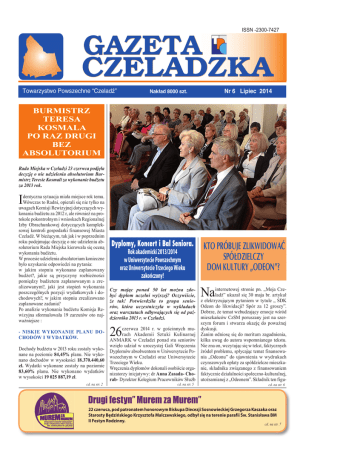ISSN -2300-7427 GAZETA CZELADZKA Towarzystwo Powszechne “Czeladź” Nr 6 Lipiec 2014 Nakład 8000 szt. BURMISTRZ TERESA KOSMALA PO RAZ DRUGI BEZ ABSOLUTORIUM Rada Miejska w Czeladzi 23 czerwca podjęła decyzję o nie udzieleniu absolutorium Burmistrz Teresie Kosmali za wykonanie budżetu za 2013 rok. I dentyczna sytuacja miała miejsce rok temu. Wówczas to Radni, opierali się nie tylko na uwagach Komisji Rewizyjnej dotyczących wykonania budżetu za 2012 r, ale również na protokole pokontrolnym i wnioskach Regionalnej Izby Obrachunkowej dotyczących kompleksowej kontroli gospodarki finansowej Miasta Czeladź. W bieżącym, tak jak i w poprzednim roku podejmując decyzję o nie udzieleniu absolutorium Rada Miejska kierowała się oceną wykonania budżetu. W procesie udzielenia absolutorium konieczne było uzyskanie odpowiedzi na pytania: w jakim stopniu wykonano zaplanowany budżet?, jakie są przyczyny rozbieżności pomiędzy budżetem zaplanowanym a zrealizowanym?, jaki jest stopień wykonania poszczególnych pozycji wydatkowych i dochodowych?, w jakim stopniu zrealizowano zaplanowane zadania? Po analizie wykonania budżetu Komisja Rewizyjna sformułowała 19 zarzutów oto najważniejsze : - NISKIE WYKONANIE PLANU DOCHODÓW I WYDATKÓW. Dochody budżetu w 2013 roku zostały wykonane na poziomie 84,45% planu. Nie wykonano dochodów w wysokości 18.370.440,60 zł. Wydatki wykonane zostały na poziomie 83,60% planu. Nie wykonano wydatków w wysokości 19 025 887,19 zł. cd. na str. 2 Dyplomy, Koncert i Bal Seniora. KTO PRÓBUJE ZLIKWIDOWAĆ SPÓŁDZIELCZY DOM KULTURY „ODEON”? Rok akademicki 2013/2014 w Uniwersytecie Powszechnym oraz Uniwersytecie Trzeciego Wieku zakończony! Czy mając ponad 50 lat można zdobyć dyplom uczelni wyższej? Oczywiście, że tak! Potwierdziła to grupa seniorów, która uczestniczyła w wykładach oraz warsztatach odbywających się od października 2013 r. w Czeladzi. 26 czerwca 2014 r. w gościnnych murach Akademii Sztuki Kulinarnej ANMARK w Czeladzi ponad stu seniorów wzięło udział w uroczystej Gali Wręczenia Dyplomów absolwentom w Uniwersytecie Powszechnym w Czeladzi oraz Uniwersytecie Trzeciego Wieku. Wręczenia dyplomów dokonali osobiście organizatorzy inicjatywy: dr Anna Zasada- Chorab- Dyrektor Kolegium Pracowników Służb cd. na str. 5 Na internetowej stronie pn. „Moja Czeladź” ukazał się 30 maja br. artykuł z elektryzującym pytaniem w tytule „ SDK Odeon do likwidacji? Spór za 12 groszy”. Dobrze, że temat wzbudzający emocje wśród mieszkańców CzSM poruszany jest na szerszym forum i stwarza okazję do poważnej dyskusji. Zanim odniosę się do meritum zagadnienia, kilka uwag do autora wspomnianego tekstu. Nie zna on, wczytując się w tekst, faktycznych źródeł problemu, spłycając temat finansowania „Odeonu” do ujawnienia w wydrukach czynszowych opłaty za spółdzielcze mieszkanie, składnika związanego z finansowaniem faktycznie działalności społeczno-kulturalnej, utożsamianej z „Odeonem”. Składnik ten figucd. na str. 6 Drugi festyn” Murem za Murem” 22 czerwca, pod patronatem honorowym Biskupa Diecezji Sosnowieckiej Grzegorza Kaszaka oraz Starosty Będzińskiego Krzysztofa Malczewskiego, odbył się na terenie parafii Św. Stanisława BM II Festyn Rodzinny. cd. na str. 7 GAZETA CZELADZKA 2 BURMISTRZ TERESA KOSMALA PO RAZ DRUGI BEZ ABSOLUTORIUM cd. ze str. 1 Sylwester Iwanowski ZDANIEM SYLWESTRA IWANOWSKIEGO - PRZEWODNICZĄCEGO KOMISJI REWIZYJNEJ RM I SZEFA KLUBU RADNYCH OPOZYCYJNYCH - ANDRZEJA MENTLA, REALIZACJA BUDŻETU MIASTA CZELADŹ ZA ROK 2013 BYŁA JESZCZE GORSZA NIŻ ROK WCZEŚNIEJ I JAK WIĘKSZOŚĆ RADNYCH GŁOSOWALI ZA NIEUDZIELENIEM ABSOLUTORIUM BURMISTRZOWI MIASTA. - NIEWYKONANIE PLANU DOCHODÓW ZE SPRZEDAŻY. W budżecie zaplanowano dochód ze sprzedaży nieruchomości (mienia) w wysokości 16.458.451,90 zł. Dochody te wykonano w wysokości zaledwie: 2.809.838,96 zł, czyli na poziomie: 17,07%. - NALEŻNOŚCI WYMAGALNE. Na koniec roku 2013 wyniosły one 15.365.278,52 zł. i były wyższe od należności zaksięgowanych na koniec roku 2012 o 1.324.990,84 zł. DRUGA ŻÓŁTA KARTKA DLA BURMISTRZA G dyby kadencję samorządową władz miasta porównać do turnieju piłki nożnej, to otrzymanie drugiej żółtej kartki od Rady Miejskiej (nie udzielone absolutorium za kolejny rok sprawozdawczy) równoznaczne by było z przymusowym opuszczeniem boiska gry. Tą „grą” jest sprawowanie władzy w mieście w latach 2010-2014. W samorządzie miasta jest inaczej, a szkoda. Do wyborów samorządowych kilka miesięcy a włodarze miasta, mimo fatalnych w obecnej kadencji wyników finansowych i braku absolutorium za 2012 i 2013 r. za nic w świecie nie opuszczą murawy boiska. Okazją do wyrażenia oceny sprawowania władzy w mieście przez Teresę Kosmalę było już ubiegłoroczne referendum. Szkoda, że zabrakło 300 uczestników głosowania by referendum było prawomocne i nieudolne sprawowanie władzy miałoby swój kres. Stanowisko Komisji Rewizyjnej Rady Miejskiej jest jednoznaczne. Dobrze, że radni dziś Andrzej Mentel - NIEWYKONANIE PLANU INWESTYCJI. Wydatki majątkowe w 2013 roku zaplanowane zostały na poziome 23.462.277,93 zł. Wykonano je na poziomie 62,18%. w wysokości 14.588.036,68 zł. Nie wykonano zadań inwestycyjnych wprowadzonych do budżetu na wniosek radnych. Dotyczy to: Remontu ul. Armii Krajowej - 473.000,00 zł, Budowy boiska przy Szkole Podstawowej nr 1 - 50.000,00 zł, Modernizacji ul. Równoległej - 560.000,00 zł, nieomal jednym głosem (nie licząc zapatrzonych i zastraszonych) dobitnie negatywnie oceniają kolejny fatalny rok funkcjonowania naszego miasta. Zainteresowani zapewne znają kluczowe zarzuty postawione Burmistrz Miasta po przedłożeniu sprawozdania z wykonania budżetu za 2013 rok. Z tych 19 zarzutów (z których jak pisze sama Teresa Kosmala radni wytłumaczą się przed prokuratorem (!) złożyła bowiem zawiadomienie o podejrzeniu popeł