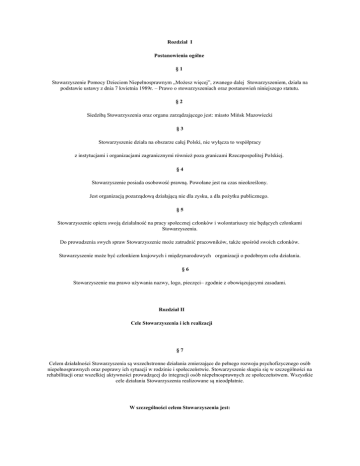 Rozdział I Postanowienia ogólne § 1 Stowarzyszenie Pomocy