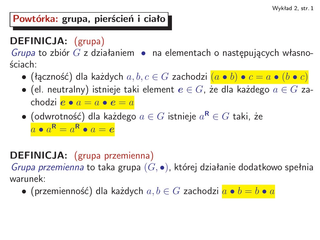 Powtórka: grupa, pierścień i ciało DEFINICJA: (grupa) MGrupa to