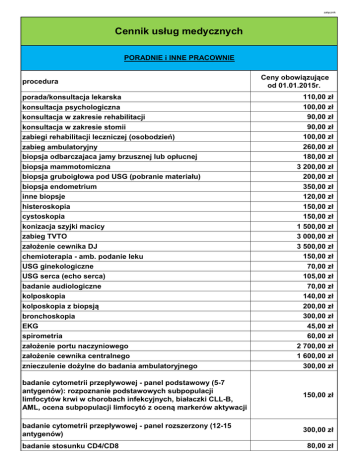 Cennik usług medycznych