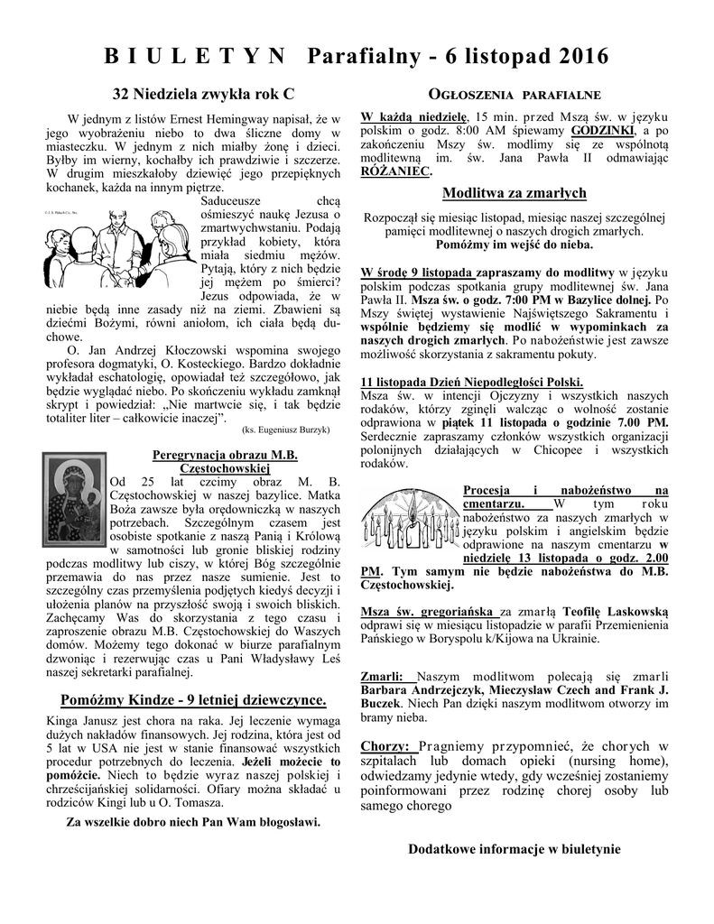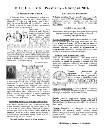 B I U L E T Y N Parafialny - 6 listopad 2016