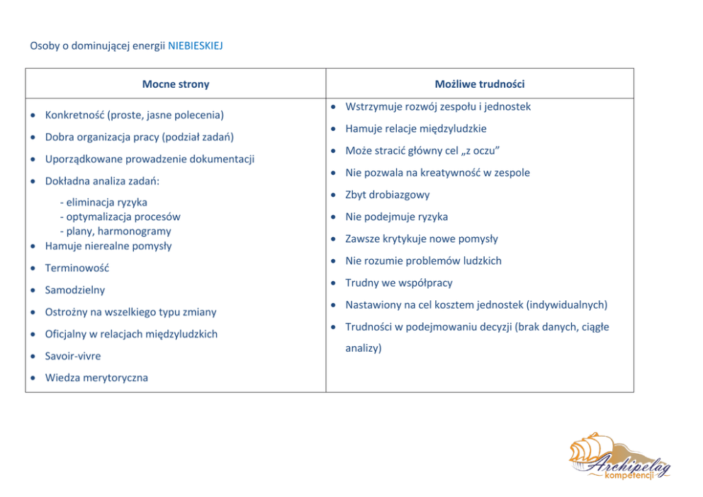 Osoby o dominującej energii NIEBIESKIEJ Mocne strony Możliwe