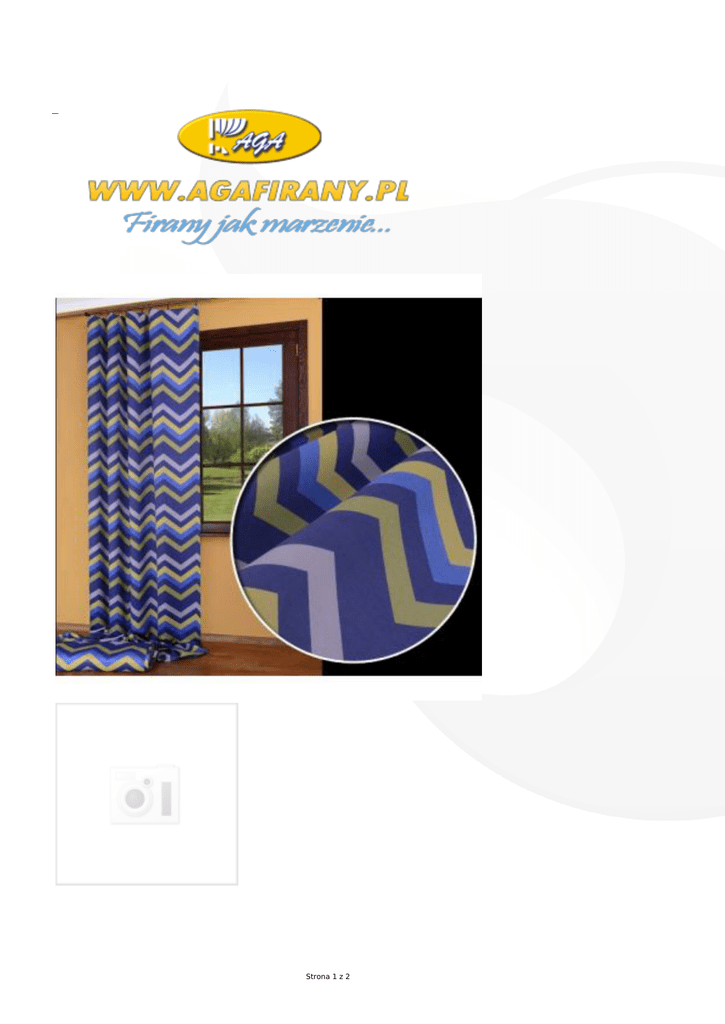 Strona 1 z 2 ELEGANCKA I NAJWYŻSZEJ JAKOŚCI GRUBA TKANINA ZASŁONOWA TYPU BLACKOUT NEW YORK Z MODNYM WZOREM - LEWA STRONA TKANINY JEST BIAŁA. TKANINA JEST MOCNO ZASŁANIAJĄCA - PRZYSŁANIA ŚWIATŁO W 90 %. KOLOR : GRANATOWY ZE WZOREM W KOLORACH : ŻÓŁTYM, ZIELONYM, NIEBIESKIM I SZARYM WYMIARY : Szerokość : 150 cm +/- 2cm Wysokość : dowolna - kupują Państwo tyle sztuk ile metrów wysokości potrzebują !! TERMIN REALIZACJI : DO 2 DNI ROBOCZYCH Strona 2 z 2