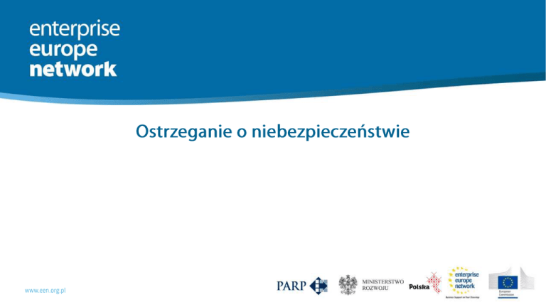 www.een.org.pl OZNAKOWANIE PRODUKTÓW W UNII EUROPEJSKIEJ Ostrzeganie o niebezpieczeństwie OSTRZEGANIE O BEZPIECZEŃSTWIE ZNAK BEZPIECZEŃSTWA TOWARU Świadczy o spełnieniu unijnych ram bezpieczeństwa określonych towarów www.een.org.pl OZNAKOWANIE PRODUKTÓW W UNII EUROPEJSKIEJ Ostrzeganie o niebezpieczeństwie Czym jest oznakowanie CE? Stanowi symbol deklaracji producenta lub upoważnionego przedstawiciela wskazujący, że wyrób jest zgodny z podstawowymi wymaganiami zawartymi w dyrektywach odnoszących się do danego produktu www.een.org.pl OZNAKOWANIE PRODUKTÓW W UNII EUROPEJSKIEJ Ostrzeganie o niebezpieczeństwie Kiedy jest wymagana deklaracja CE? Jeżeli wyrób wytwarzany lub importowany (spoza UE) stanowi rodzaj towarów wskazanych w Dyrektywach Nowego Podejścia, przewidujących zastosowanie oznakowania CE – konieczna jest realizacja wymogów zawartych w tych przepisach. Umieszczenie na towarze znaku CE potwierdza spełnienie wymagań. www.een.org.pl OZNAKOWANIE PRODUKTÓW W UNII EUROPEJSKIEJ Ostrzeganie o niebezpieczeństwie Podstawa prawna Obowiązek www.een.org.pl Dyrektywa 2001/95/WE Parlamentu Europejskiego i Rady z dnia 3 grudnia 2001 r. w sprawie ogólnego bezpieczeństwa produktów 1) spełnienia wymogów unijnych i krajowych, 2) oceny zagrożenia (cechy i odziaływanie), 3) informowania w języku urzędowym kraju członkowskiego konsumenta o możliwych zagrożeniach. OZNAKOWANIE PRODUKTÓW W UNII EUROPEJSKIEJ Ostrzeganie o niebezpieczeństwie PRODUKT BEZPIECZNY BRAK ZAGROŻENIA/ ZAGROŻENIE MINIMALNE www.een.org.pl WYSOKI POZIOM OCHRONY ZDROWIA I ŻYCIA OZNAKOWANIE PRODUKTÓW W UNII EUROPEJSKIEJ Ostrzeganie o niebezpieczeństwie CZARNA LISTA PRODUKTÓW – RAPEX Rapid Alert System Alert number: A12/1180/16 Category: Clothing, textiles and fashion items Product: Leather sandals Brand: Natura Name: Unknown Type/number of model: 819-9 Batch number/Barcode: Unknown Risk: Chemical The amount of Chromium (VI) in the leather is too high (measured value up to 31 mg/kg). Chromium (VI) is sensitising and may trigger allergic reactions. The product does not comply with the REACH Regulation. Measures ordered by public authorities: Import rejected at border www.een.org.pl OZNAKOWANIE PRODUKTÓW W UNII EUROPEJSKIEJ Ostrzeganie o niebezpieczeństwie www.een.org.pl OZNAKOWANIE PRODUKTÓW W UNII EUROPEJSKIEJ Ostrzeganie o niebezpieczeństwie UWAGA NA ZNAK CHINA EXPORT Znak CE www.een.org.pl Znak CHINA EXPORT www.dalkowska-jezowska.pl [email protected] Nota prawna Prezentacja została przygotowana w oparciu o przepisy prawa obowiązujące w dniu 27.10.2016 r. i stanowi jedynie wstępną informację na temat zasad oznakowania produktów. Podjęcie decyzji w konkretnym przypadku co do oznakowania produktu wymaga szczegółowej analizy aktów prawnych, z uwzględnieniem obowiązującego stanu prawnego, a w konsekwencji jest wyłącznym ryzykiem znakującego, z wyłączeniem odpowiedzialności autora prezentacji, Polskiej Agencji Rozwoju Przedsiębiorczości i Enterprise Europe Network. www.een.org.pl