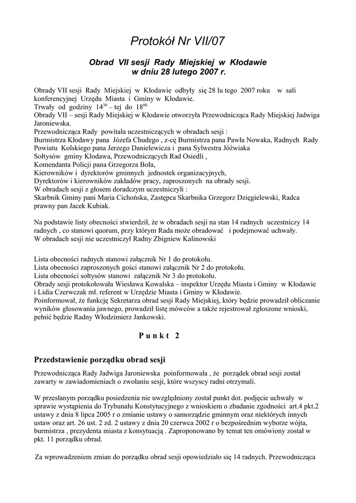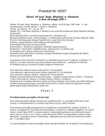 Protokół Nr VII/07 - Urząd Miasta i Gminy w Kłodawie