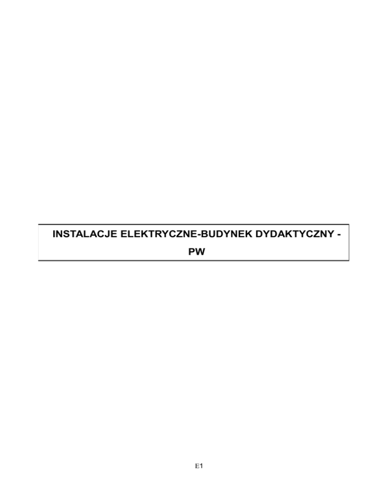 INSTALACJE ELEKTRYCZNE-BUDYNEK DYDAKTYCZNY PW E1 ZAWARTOŚĆ OPRACOWANIA 1. Strona tytułowa str. E1 2. Zawartość opracowania str. E2 3. Warunki przyłączenia str. E3-E5 4. Opis techniczny str. E6-E9 5. Obliczenia techniczne str. E10-E13 6. Plan zagospodarowania terenu – Sieci elektryczne rys. nr E/01 str. E14 7. Plan instalacji oświetlenia - rzut parteru rys. nr E/02 str. E15 8. Plan instalacji oświetlenia - rzut piętra rys. nr E/03 str. E16 9. Plan instalacji gniazd - rzut parteru rys. nr E/04 str. E17 10. Plan instalacji gniazd– rzut pietra rys. nr E/05 str. E18 11. Plan instalacji CCTV– rzut parteru rys. nr E/06 str. E18 12. Plan instalacji CCTV– rzut pietra rys. nr E/07 str. E18 13. Plan instalacji odgromowej rys. nr E/08 str. E19 14. Schemat sygnalizacji pożaru rys. nr E/09 str. E20 15. Schemat rozdzielni RG rys. nr E/10 str. E21 16. Schemat rozdzielni R1 i R2 rys. nr E/11 str. E22 17. Schemat rozdzielni R-UPS rys. nr E/12 str. E23 18. Widok rozdzielni R-UPS rys. nr E/13 str. E24 19. Widok UPS rys. nr E/14 str . E25 20. rys. nr E/15 str . E26 Schemat blokowy CCTV E2 OPIS TECHNICZNY 1 Temat opracowania Tematem opracowania są instalacje elektryczne istniejącego budynku Szkoły Podstawowej w Krośnie-budynek nr.2 w Mosinie. 2 Podstawa prawna opracowania Podstawę prawną do opracowania niniejszej dokumentacji stanowi zlecenie Urzędu Gminy w Mosinie Pl20 Pażdziernika 1 62-050 Mosina miejsce realizacji ul.Krasickiego 16 62-050 Mosina nr.ew.działki 2713/3. 3 Zawartość opracowania Niniejsza dokumentacja zawiera: − opis techniczny − obliczenia techniczne − rysunki techniczne − opracowanie kosztowe (w odrębnej teczce) 4 Założenia i dane wyjściowe Niniejsza dokumentacji została opracowana w oparciu o następujące dane: − obowiązujące w zakresie projektowania Normy Państwowe, Przepisy i Rozporządzenia, − realizacyjny plan zagospodarowania obiektu, − projekt budowlany architektoniczny budynku, − projekt budowlany instalacji sanitarnych w budynku, − projekt budowlany instalacji wentylacyjnej i klimatyzacji w budynku 5 Zasilanie budynku Źródłem zasilania całego obiektu - istniejącej szkoły i projektowanej sali sportowej - w energię elektryczną będzie projektowane przez Energa-Operator S.A. Przyłącze kablowe. Przyłącze będzie prowadzone od projektowanego, na granicy działki 350/3, złącza kablowo- E3 pomiarowego typu ZK-3-R/P1. Dokładna trasa przyłącza i lokalizacja złącza przedstawiona jest na Planie Zagospodarowania Terenu (Rys.E/01). 6 Rozdział energii W rozdzielnicy R-Z za Wyłącznikiem Pożarowym Budynku następuje rozdział zasilania na wlz zasilający rozdzielnicę główną istniejącej szkoły oraz wlz zasilający rozdzielnicę główną projektowanej sali sportowej. WLZ sali sportowej z rozdzielnicy R-Z należy poprowadzić na zewnątrz budynku po elewacji na wysokości 3,5m, a następnie w projektowanym budynku sali sportowej. Trasa WLZ w projektowanym budynku sali sportowej jest przedstawiona na planie parteru (Rys.E/03). Zasilanie rozdzielnicy głównej RG odbywać się będzie WLZ wykonanym przewodami typu 5x Ly 25mm2 w rurze elektroinstalacyjnej KR∅50 p/t. Rozdziału energii na linie zasilające poszczególne obwody przewiduje się dokonywać w rozdzielnicy RG zlokalizowanej w pomieszczeniu przedsionka 0/01. W rozdzielnicy przewidziano zainstalowanie ogranicznika przepięć oraz zabezpieczeń poszczególnych obwodów. Schemat i widok rozdzielnicy załączono do dokumentacji. 2 8 Technika układania kabli Projektowany kabel należy układać w rowie o głębokości t = 0,7 i szerokości dna 0,4m. Do przygotowanego rowu należy nasypać warstwę piasku o grubości 10cm i na niej układać kabel. Ułożony kabel zasilający oświetlenie i bramy wjazdowe należy zgłosić Służbie Nadzoru Inwestorskiego oraz we właściwej służbie geodezyjnej. Kabel po odbiorze i inwentaryzacji należy zasypać warstwą piasku o grubości 10 cm, a następnie gruntem z wykopu pozbawionym gruzu i kamieni. W trakcie zasypywania w odległości 25cm od górnej powierzchni kabla należy ułożyć folię znaczeniową koloru niebieskiego o grubości 0,5mm i szerokości 40cm. W miejscach skrzyżowania z innym uzbrojeniem, kabel ułożyć w rurze ochronnej np. f-my Arot typu DVK Φ50 dla kabla o przekroju 4mm2 i w rurze ochronnej np. f-my Arot typu DVK Φ110 dla kabla o przekroju 25mm2 . Układany kabel na trasie co 10m oraz przy wprowadzaniu do złącza i zasilanego obiektu powinien być wyposażony w oznaczniki zawierające informacje zgodnie z obowiązującą Normą. 9 Plan bezpieczeństwa i ochrona zdrowia Projektowane linie kablowe są liniami izolowanymi i nie stanowią przy prawidłowej eksploatacji zagrożenia dla środowiska i przebywających w jej pobliżu ludzi. Linie są odporne na E4 oddziaływanie szkodliwych warunków środowiska naturalnego. Prace związane z budową linii należy prowadzić wyłącznie w stanie beznapięciowym. Do wykonania inwestycji należy stosować wyłącznie materiały posiadające atesty lub certyfikaty dopuszczające ich stosowanie na terenie Polski. 10 Instalacje odbiorcze elektryczne W obiekcie zaprojektowano instalacje: − oświetlenia podstawowego − oświetlenia ewakuacyjnego − gniazd wtykowych ogólnego przeznaczenia − zasilania i sterowania wentylacji − odgromowa − ochrony od przepięć − ochrony od porażeń 11 OśwInstlacje podstawowe Instalacja oświetlenia ogólnego - typy opraw i ich rozmieszczenie zostało przedstawione na planie instalacji. Załączanie Oświetlenia w poszczególnych pomieszczeniach zaprojektowano łącznikami przeznaczonymi dla tych pomieszczeń. Załączanie oświetlenia ciągów komunikacyjnych odbywać się będzie za pomocą przycisków i łączników. 12 OśwInstalacje ewakuacyjne Instalacja oświetlenia ewakuacyjnego wchodzi w skład instalacji oświetlenia ogólnego. Dla potrzeb oświetlenia ewakuacyjnego przewidziano oprawy z zainstalowanymi w