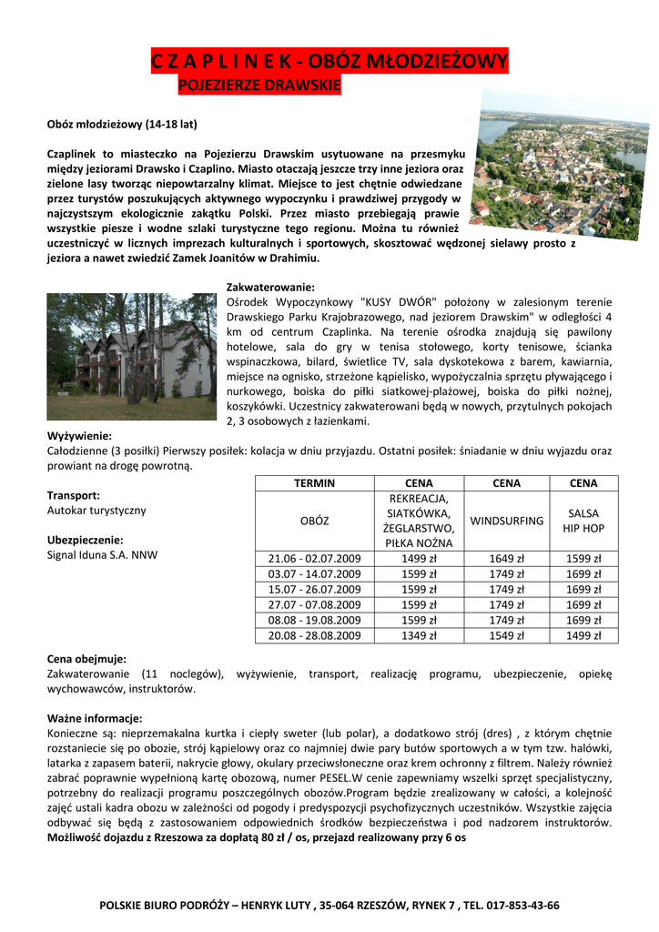 zabrać poprawnie wypełnioną kartę obozową, numer PESEL.W cenie zapewniamy wszelki sprzęt specjalistyczny,