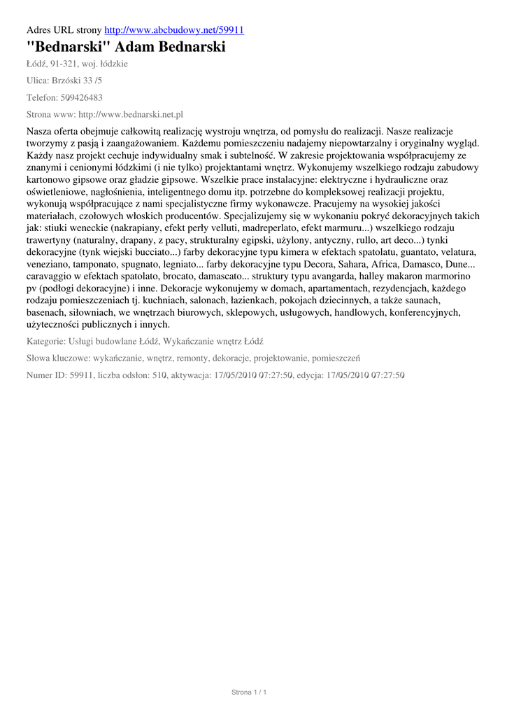 "Bednarski" Adam Bednarski, Lodz, Brzoski 33 /5