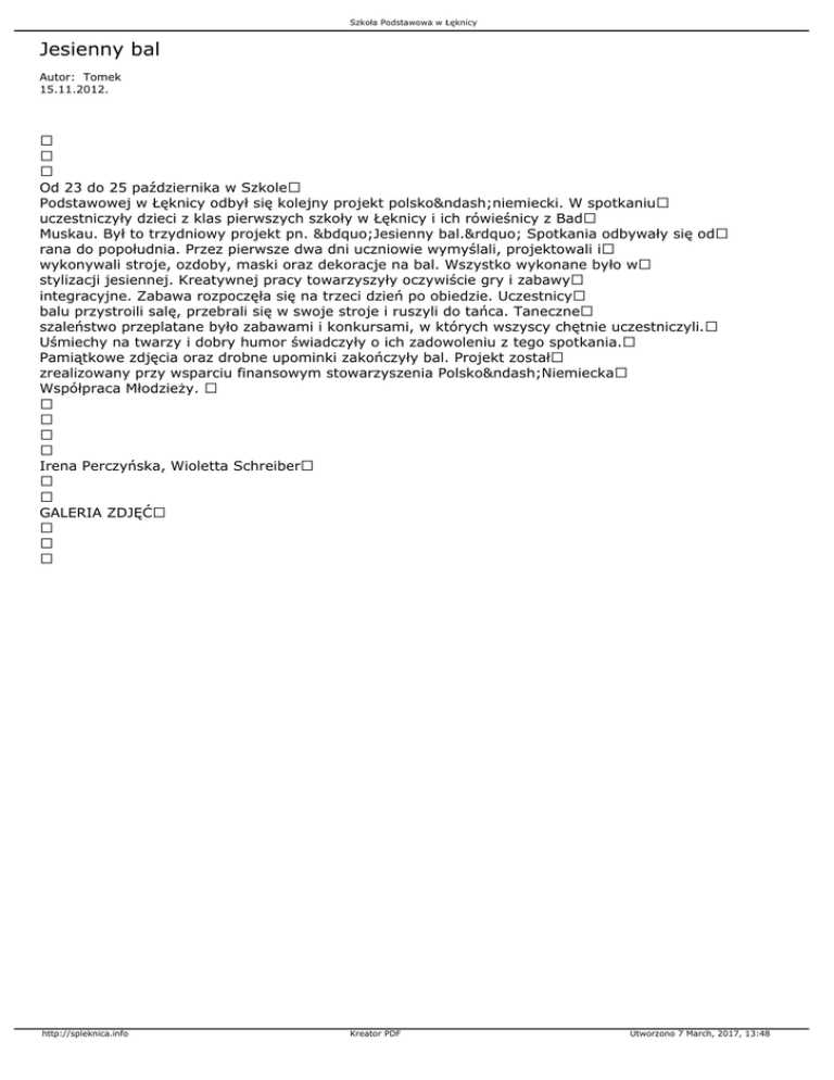 Jesienny bal - Szkoła Podstawowa w Łęknicy