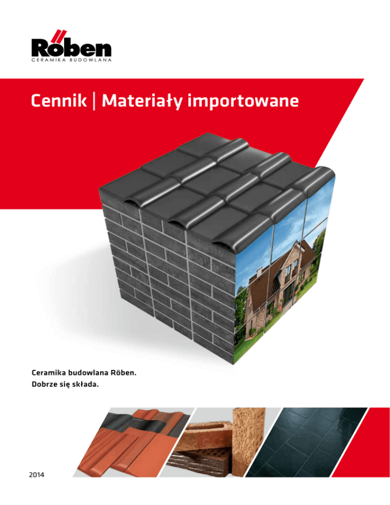 Cennik | Materiały importowane Ceramika budowlana Röben. Dobrze się składa. 2014 KLINKIER CERAMICZNY PERŁOWOBIAŁY owa ukowa OSLO Dane techniczne MONTBLANC MALMÖ ESBJERG ISLAND QUEBEC gładka/ryflowana Dane techniczne Dane techniczne wymiar waga 1 szt. szt./m 2 – 240x115x52 mm – 2,3 kg – ok. 65 – 576 0,80 wymiar waga 1 szt. szt./m 2 szt./paleta – 240x115x52 mm – 3,3 kg – ok. 65 – 576 2,07 NF wymiar waga 1 szt. szt./m 2 szt./paleta – 240x115x71 mm – 3,3 kg – ok. 48 – 416 0,99 0,99 0,99 0,99 0,99 1,35* 1,51** NF wymiar waga 1 szt. szt./m 2 – 240x115x71 mm – 4,5 kg – ok. 48 – 416 2,30 2,30 2,46 2,46 2,46 2,99* 3,73** DF DF pełna pełna szt./paleta szt./paleta DF DF DF DF pełna pełna NF NF NF NF pełna pełna DF połówka wymiar waga 1 szt. szt./m 2 szt./paleta – 240x55x52 mm – ok. 1,2 kg – ok. 65 – 1152 wymiar waga 1 szt. szt./m 2 szt./paleta – 240x90x71 mm – 2,68 kg – 48 – 520 0,68 DF połówka DF połówka 9 cm 0,78 0,78 LDF LDF 0,78 * lico jednostronnie łupane ** lico dwustronnie łupane wymiar waga 1 szt. szt./m 2 szt./karton szt./paleta – 240x14x52 mm – 0,38 kg – ok. 66 – 33/ok. 0,5 m 2 – 3465/ok. 52,5 m 2 0,30 kątowa wymiar waga 1 szt. szt./m 2 szt./karton dł. ramienia – 240x14x52 mm – 0,53 kg – ok. 16 – 20 – ok. 115 mm 1,80 NF wymiar waga 1 szt. szt./m 2 szt./karton szt. paleta – 240x14x71 mm – 0,54 kg – 48 – 24 – 2232 0,40* wymiar waga 1 szt. szt./m.b. szt./karton dł. ramienia – 240x14x71 mm – 0,74 kg – 12 – 20 – ok. 115 mm DF DF NF kątowa DF DF kątowa 2,10 NF NF 0,40* 2,10 NF 2,10 wymiar waga 1 szt. szt./m 2 szt./paleta wymiar waga 1 szt. szt./m 2 szt./paleta NF owa wymiar NF 1 szt. ukowa waga szt./m 2 kątowa szt./paleta – 200x100x52 mm – ok. 2,25 kg – ok. 48 – 540 CZERWONA MANUS 0,75banda SCHWABING CZERWONA cieniowana podpalana NIEBIESKA cieniowana MANUS 0,75aruba SZARA cieniowana MANUS 0,99tonga wymiar – 240x14x71 mm waga 1 szt. mm – 0,54 kg – 240x118x52 2 kg – 48 szt./m – ok. 3,2 – ok. 34 szt./karton – 24 – 360 szt./paleta – ok. 2232 0,800,40 0,800,40 0,40 wymiar – 240x14x71 mm – 240x59x52 waga 1 szt. mm – 0,74 kg – ok. 1,6 kg – 12 szt./m.b. – ok. 66 szt./karton – 20 – 720 dł. ramienia – ok. 115 mm 0,652,10 0,652,10 2,10 MANUS KREMOWOBIAŁA MANUS NIEBIESKO-BRĄZOWA cieniowana, podpalana /bez fazy MANUS 2,10 0,40 2,10 FARO CHELSEA WESTERWALD RAVELLO RAVELLO SORRENTO MANCHESTER NOTTINGHAM YUKON szara FARO cieniowana szara podpalana, gładka cieniowana podpalana, gładka cieniowana CHELSEA czerwona WESTERWALD czerwona cieniowana czerwona gładka czerwona cieniowana gładka baryt RAVELLO biały baryt biały piaskowobiała RAVELLO żółta piaskowobiała żółta cieniowana żółta żółta cieniowana piaskowobiała SORRENTO żółtopomarańpiaskowobiała czowa żółtopomarańczowa MANCHESTER NOTTINGHAM granit YUKON cieniowana granit – 240x115x52 mm – 2,3 kg 240x115x52 mm –– ok. 65 2,3 kg –– 576 – ok. 65 – 576 0,80 0,80 0,82 0,82 0,68 0,68 wymiar waga 1 szt. wymiar 2 szt./m waga 1 szt. szt./paleta szt./m 2 2,07 2,07 2,07 2,07 1,86 1,86 szt./paleta – 240x115x52 mm – 3,3 kg 240x115x52 mm –– ok. 65 3,3 kg –– 576 – ok. 65 – 576 wymiar waga 1 szt. wymiar 2 szt./m waga 1 szt. szt./paleta szt./m 2 szt./paleta – 240x115x71 mm – 3,3 kg 240x115x71 mm –– ok. 48 3,3 kg –– 416 – ok. 48 – 416 1,08 1,08 1,08 1,08 1,12 1,12 1,12 1,12 0,85 0,85 1,08 1,08 0,99 0,99 0,99 0,99 0,93 0,93 1,12 1,12 wymiar waga 1 szt. wymiar 2 szt./m waga 1 szt. szt./paleta szt./m 2 szt./paleta – 240x115x71 mm – 4,5 kg 240x115x71 mm –– ok. 48 4,5 kg –– 416 – ok. 48 – 416 2,53 2,53 2,53 2,53 2,53 2,53 2,53 2,53 2,29 2,29 2,53 2,53 2,47 2,47 2,47 2,47 2,29 2,29 2,53 2,53 wymiar waga 1 szt. wymiar 2 szt./m waga 1 szt. szt./paleta szt./m 2 szt./paleta – 240x55x52 mm – 1,24 kg 240x55x52 mm –– ok. 65 1,24 kg –– 1152 – ok. 65 – 1152 wymiar waga 1 szt. wymiar 2 szt./m waga 1 szt. szt./paleta szt./m 2 szt./paleta – 290x90x52 mm – 2,6 kg 290x90x52 mm –– ok. 53 2,6 kg –– 459 – ok. 53 – 459 szt./paleta 0,61 0,61 1,19 1,19 wymiar waga 1 szt. wymiar 2 szt./m waga 1 szt. szt./karton 2 szt./m szt./paleta szt./karton szt./paleta wymiar waga 1 szt. wymiar 2 szt./m waga 1 szt. szt./karton 2 szt./m dł. ramienia szt./karton – 240x14x52 mm – 0,38 kg 240x14x52 mm –– ok. 66 0,38 kg0,5 m 2 –– 33/ok. – ok. 66 – 3465/ok. 52,52 m 2 – 33/ok. 0,5 m – 3465/ok. 52,5 m 2 – 240x14x52 mm – 0,53 kg 240x14x52 mm –– ok. 16 0,53 kg –– 20 – ok. 16 – ok. 115 mm – 20 dł. ramienia – ok. 115 mm wymiar – 240x14x71 mm waga 1 szt. – 0,54 kg wymiar 240x14x71 mm 2 szt./m –– 48 waga 1 szt. –– 24 0,54 kg szt./karton szt./m 2 48 szt./paleta –– 2232 – 24 –szt./karton 240x14x71 mm szt./paleta – 2232 –wymiar 0,54 kg – 240x14x71 mm –waga 48 1 szt. – 0,74 kg wymiar 240x14x71 mm –szt./m.b. 24 –– 12 waga 1 szt. 0,74 kg –– 20 –szt./karton ok. 2232 szt./m.b. 12 115 mm dł. ramienia –– ok. szt./karton – 20 –dł. 240x14x71 ramienia mm – ok. 115 mm MANUS moorea MANUS java carbon MANUS samoa 0,40 0,65* 0,40 0,650,40 0,40 0,40 2,10 2,10 2,10 2,10 waga 1 szt. szt./m.b. szt./karton dł. ramienia – 0,74 kg – 12 – 20 – ok. 115 mm 0,30 0,30 0,30 0,30 0,27 0,27 1,80 1,80 1,80 1,80 1,80 1,80 MANUS banda MANUS aruba 0,40 0,40 2,10 0,40* 0,40* 2,10 2,10 MANUS tonga MANUS banda carbon 0,40 0,40 0,40* 0,40* 2,10 2,10 MANUS kyra carbon 0,40 0,40 2,10 2,10 MANUS moorea MANUS tonga carbo MANUS java carbon MANUS samoa 0,40 0,40 0,40 0,40 0,40 2,10 0,37* 0,37* 0,40 2,10 2,10 * dostępne także w rozmiarze 240×9×71 mm * dostępne także w rozmiarze 240×9×71 mm MANUS salina carbon 2,10 2,10 0,40 0,40 2,10 2,10 2,10 2,10 2,10 2,10 2,10 2,10 RIMINI żółta, cieniowana piaskowana ryflowana/gładka VOGTLAND czerwona VOGTLAND cieniowana SPESSART cieniowana TAUNUS