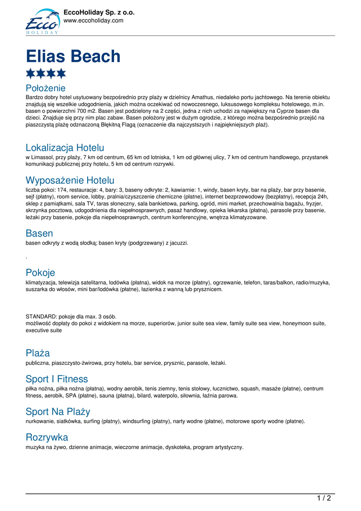 Bardzo dobry hotel usytuowany bezpośrednio przy plaży w dzielnicy Amathus, niedaleko portu jachtowego. Na terenie obiektu