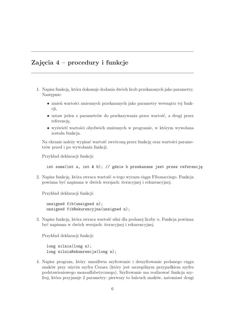 7. Napisać program, który wykorzystując część z zaimplementowanych wcześniej