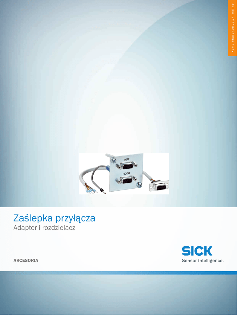 Karta charakterystyki online Zaślepka przyłącza Adapter i rozdzielacz AKCESORIA Zaślepka przyłącza | Adapter i rozdzielacz AKCESORIA A B C D E F H I J K L M N O P Q R S T Informacje do zamówienia Typ Nr artykułu Zaślepka przyłącza więcej wersji urządzeń i akcesoriów 2029359 www.sick.com/Adapter_i_rozdzielacz Szczegółowe dane techniczne Dane techniczne Rodzina akcesoriów Inne adaptery i rozdzielacze Opis Zaślepka przyłącza z dwoma wtykami D-Sub 9-pinowymi, IP 20 Klasyfikacje ECl@ss 5.0 27279204 ECl@ss 5.1.4 27279204 ECl@ss 6.0 27279204 ECl@ss 6.2 27279204 ECl@ss 7.0 27279204 ECl@ss 8.0 27279204 ECl@ss 8.1 27279204 ECl@ss 9.0 27273602 ETIM 5.0 EC000190 ETIM 6.0 EC000190 UNSPSC 16.0901 32131023 2 AKCESORIA | SICK Karta charakterystyki online | 2017-03-04 11:51:08 Informacje mogą ulec zmianie bez powiadomienia Karta charakterystyki online SICK W SKRÓCIE Firma SICK należy do czołowych producentów inteligentnych czujników i rozwiązań wykorzystujących czujniki do zastosowań przemysłowych. Wyjątkowa gama produktów i usług stwarza idealną podstawę dla bezpiecznego i wydajnego sterowania procesami, ochrony ludzi przed wypadkami i unikania zanieczyszczenia środowiska. Mamy szerokie doświadczenie w różnych branżach i znamy występujące w nich procesy oraz wymagania. Nasze inteligentne czujniki zapewniają klientom dokładnie to, czego im potrzeba. W centrach aplikacji w Europie, Azji i Ameryce Północnej rozwiązania systemowe są testowane i optymalizowane pod kątem potrzeb konkretnych klientów. Wszystko to sprawia, że jesteśmy niezawodnym dostawcą i partnerem w zakresie rozwoju. Naszą ofertę dopełniają kompleksowe usługi: rozwiązania SICK LifeTime Services wspierają klientów w trakcie całego cyklu użytkowania maszyny i dbają o bezpieczeństwo i produktywność. Właśnie tak rozumiemy hasło „Sensor Intelligence”. BLISKO KLIENTA NA CAŁYM ŚWIECIE: Osoby kontaktowe i pozostałe lokalizacje - www.sick.com SICK AG |Waldkirch|Niemcy |www.sick.com
