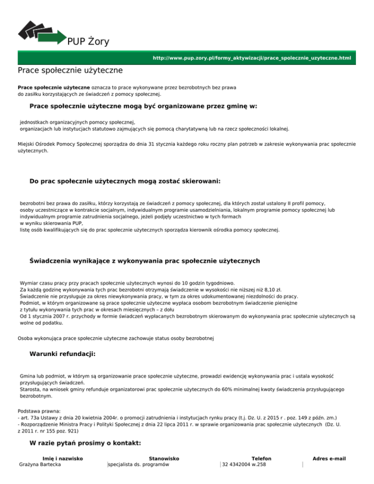 Prace społecznie użyteczne - Powiatowy Urząd Pracy w Żorach